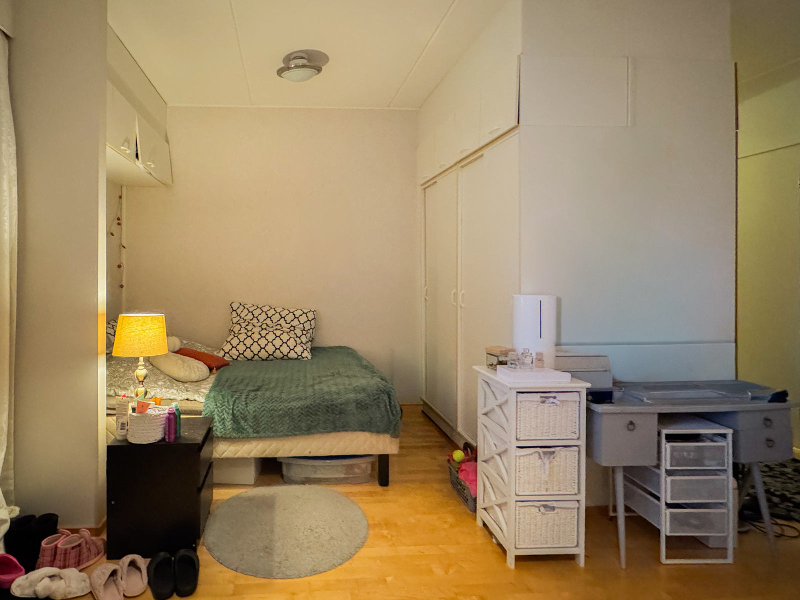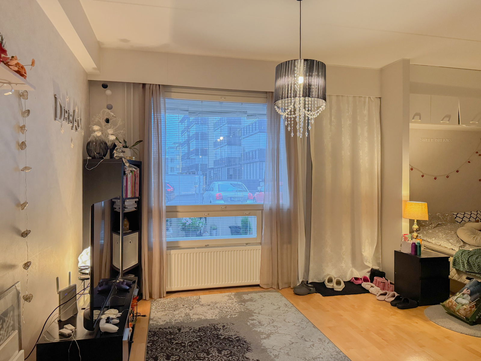 Vuokrattavissa tilava saunallinen yksiö. Asunto sijaitsee taloyhtiön ensimmäisessä kerroksessa. Oleskelutiloista kulku lasitetulle terassille. Autopistokepaikat vuokrataan taloyhtiön kautta.
