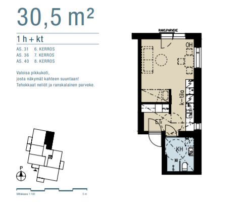 | Huoneistoselitelmä | 1h, kt, alkovi, ranskalainen parveke |