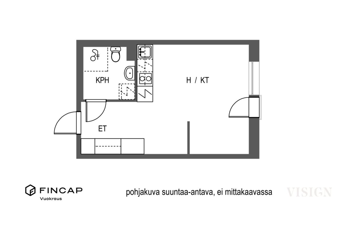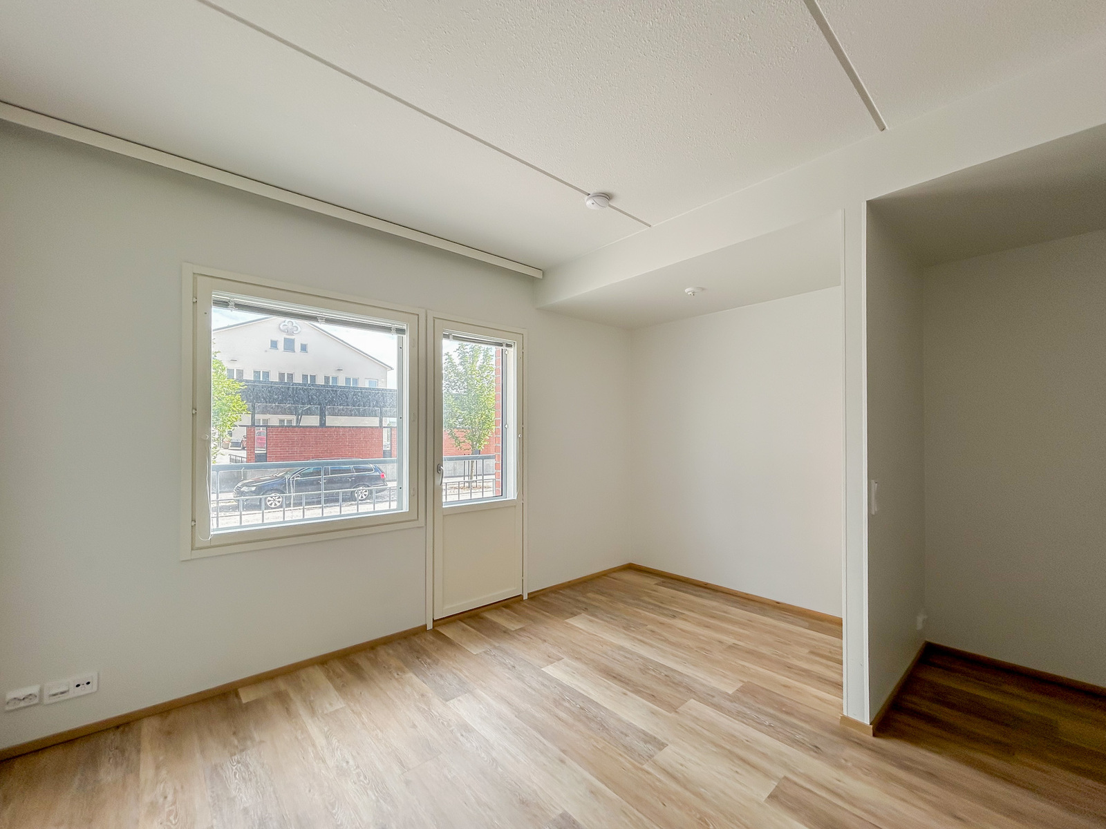 • Asuinhuoneissa vinyylilankku ja kylpyhuoneessa laatta.