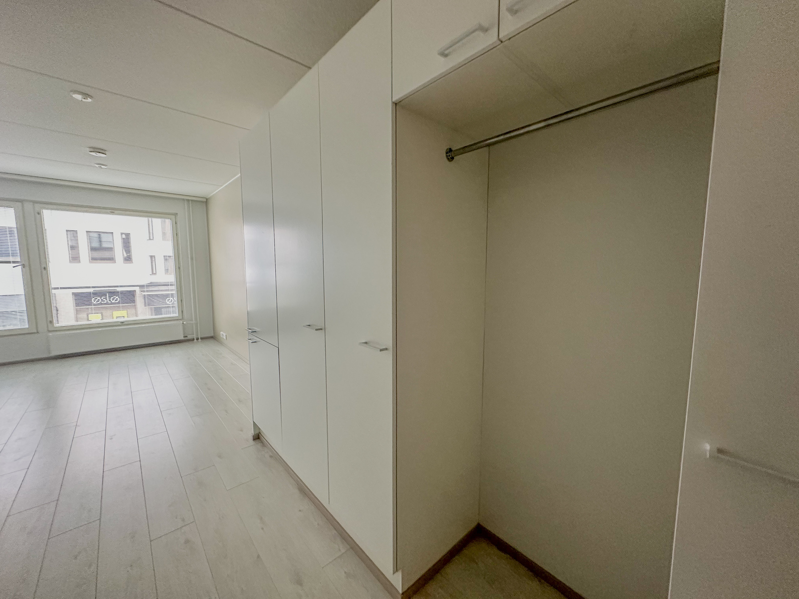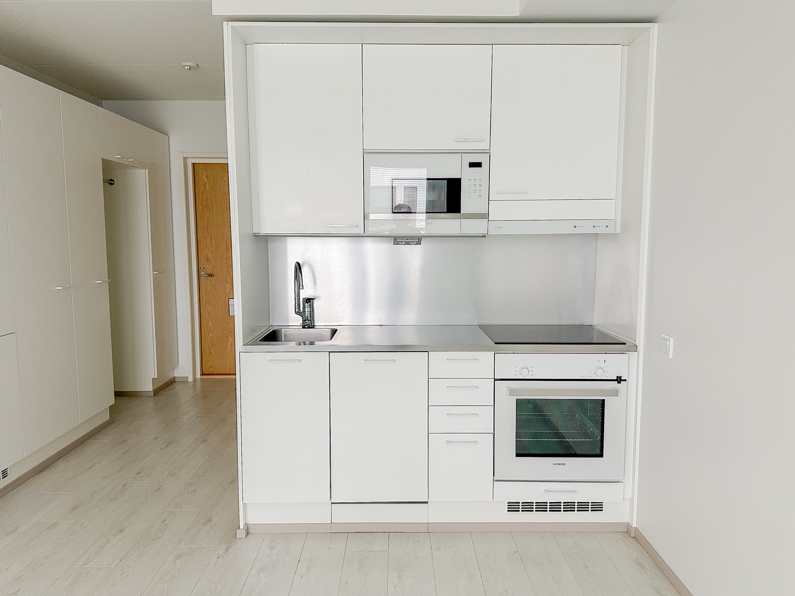 Tämä moderni ja tehokkaasti suunniteltu yksiö tarjoaa erinomaiset puitteet viihtyisään asumiseen. Huoneistossa on avoin olohuone-keittotila, jonka yhteyteen sijoittuva alkovi helpottaa sisustamista ja tuo erillisen makuutilan tuntua. Laadukkaat materiaalit, sekä hyvin säilytystilaa. Asunnossa on ranskalainen parveke, joka tuo luonnonvaloa ja ilmavuutta huoneistoon.