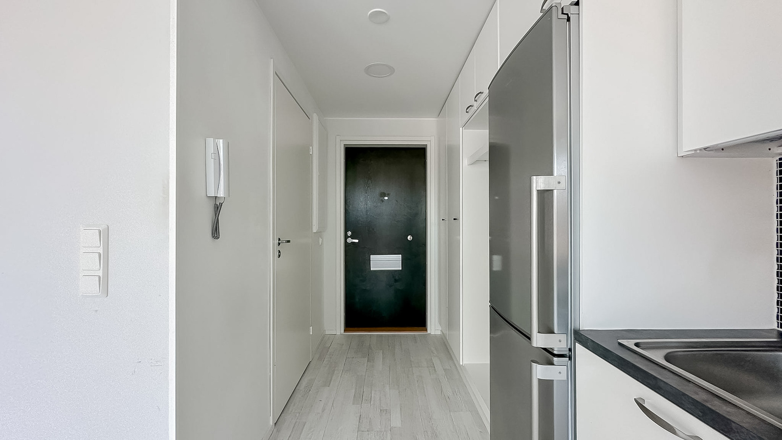 Asunnossa on vaaleat pinnat, rosteriset kodinkoneet (mm. astianpesukone) ja kylpyhuoneessa on hyvin tilaa pyykinpesukoneelle. Asunnon pohjaratkaisu soveltuu hyvin niin yhden kuin kahden hengen taloudelle. Asunnossa hyvin säilytystilaa muun muassa tilavan vaatehuoneen ansiosta. Olohuoneesta kulku omalle suojaiselle pihalle. Laajakaista DNA 100M sisältyy vuokraan.