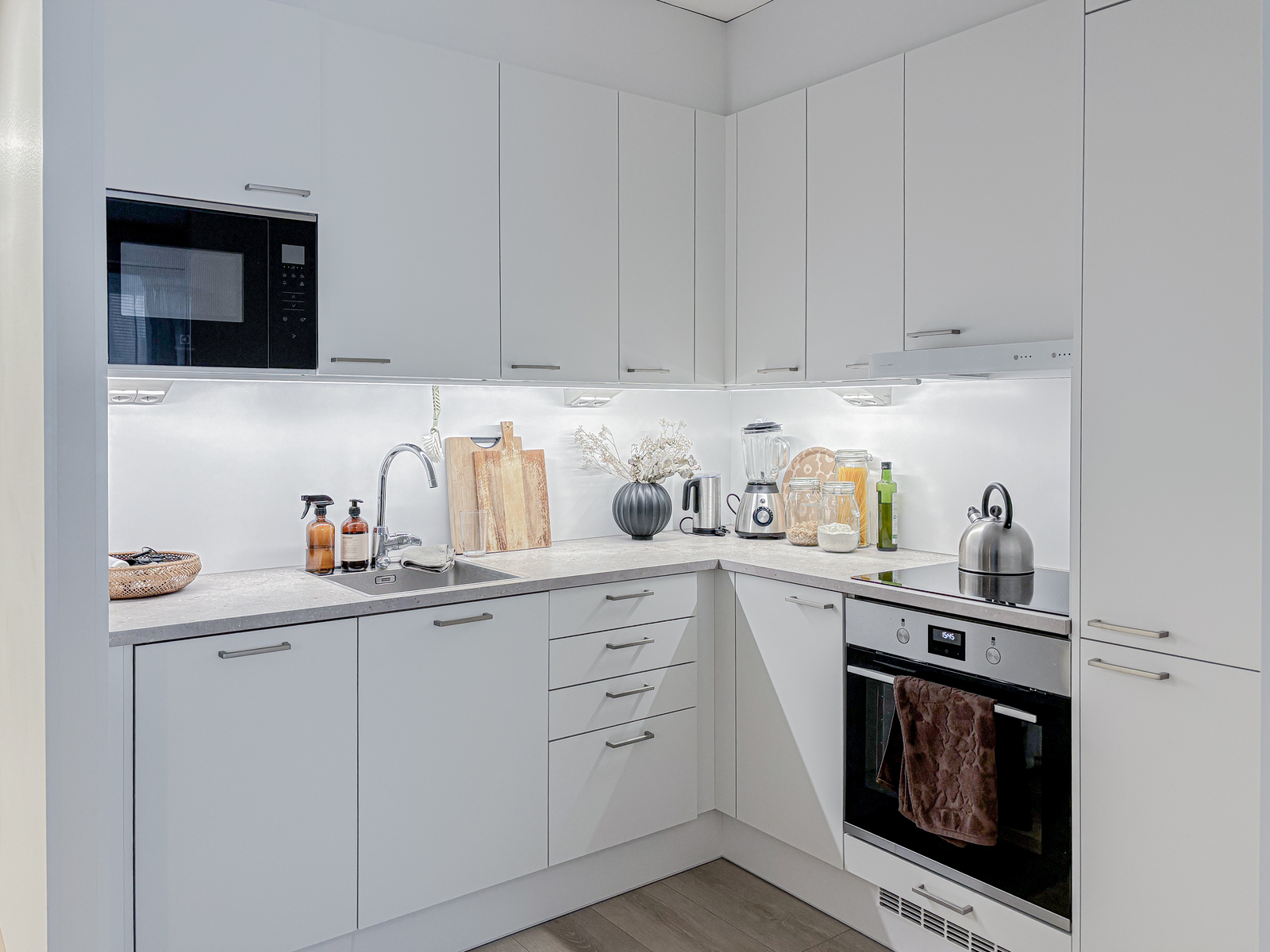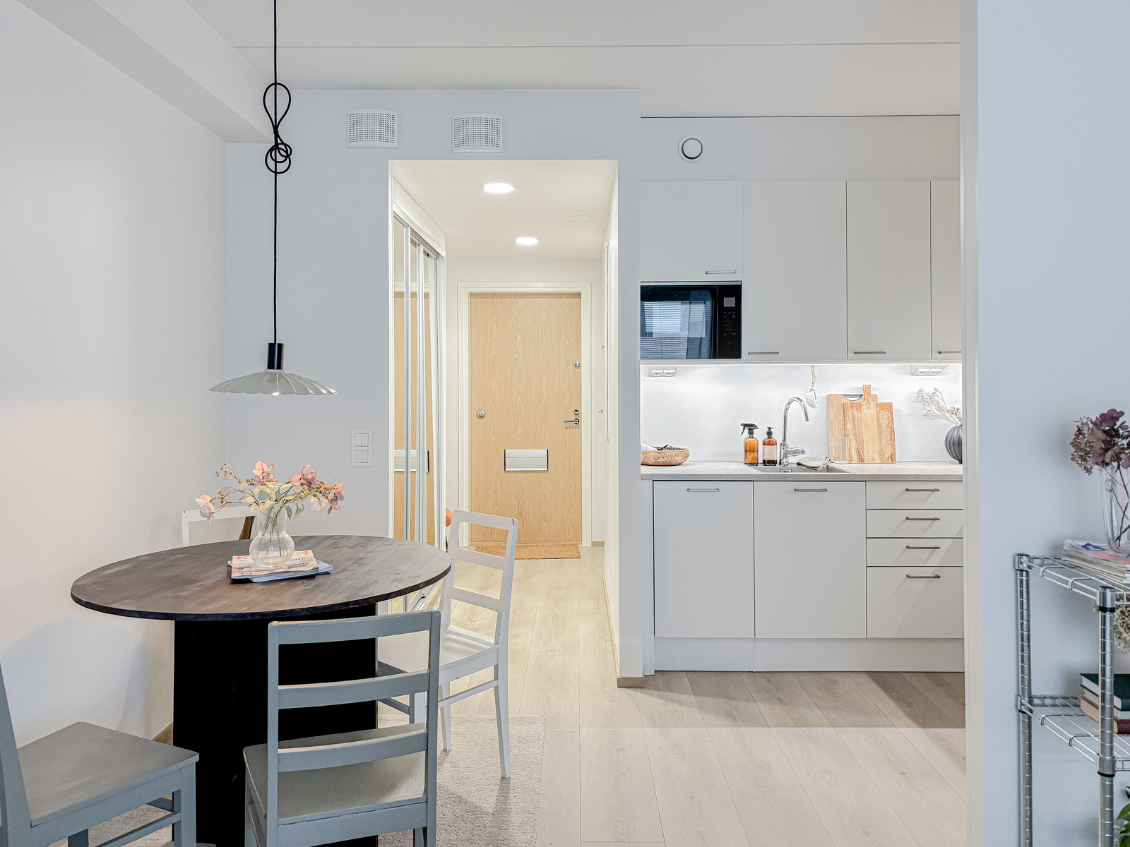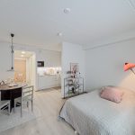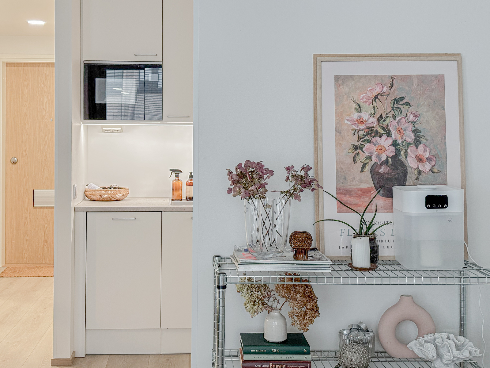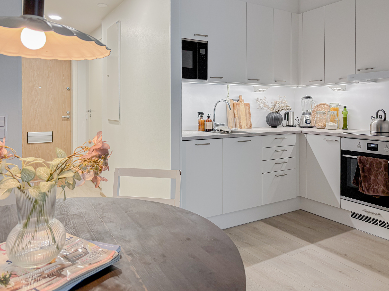Tässä kodissa on tilava alkovi, minne voi sijoittaa fiksusti sängyn. Näin muu huone on helppo sisustaa oleskeluun. Lisätilantuntua on tuomassa tilava lasitettu parveke. Asunnossa on modernit varustelut ja kauniin valkeat pinnat!