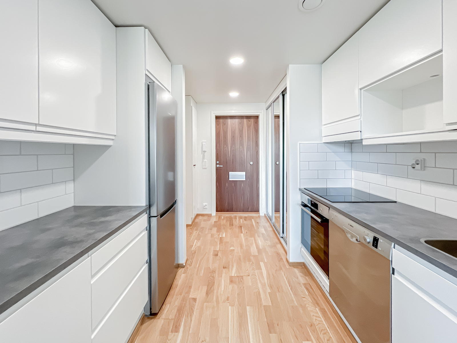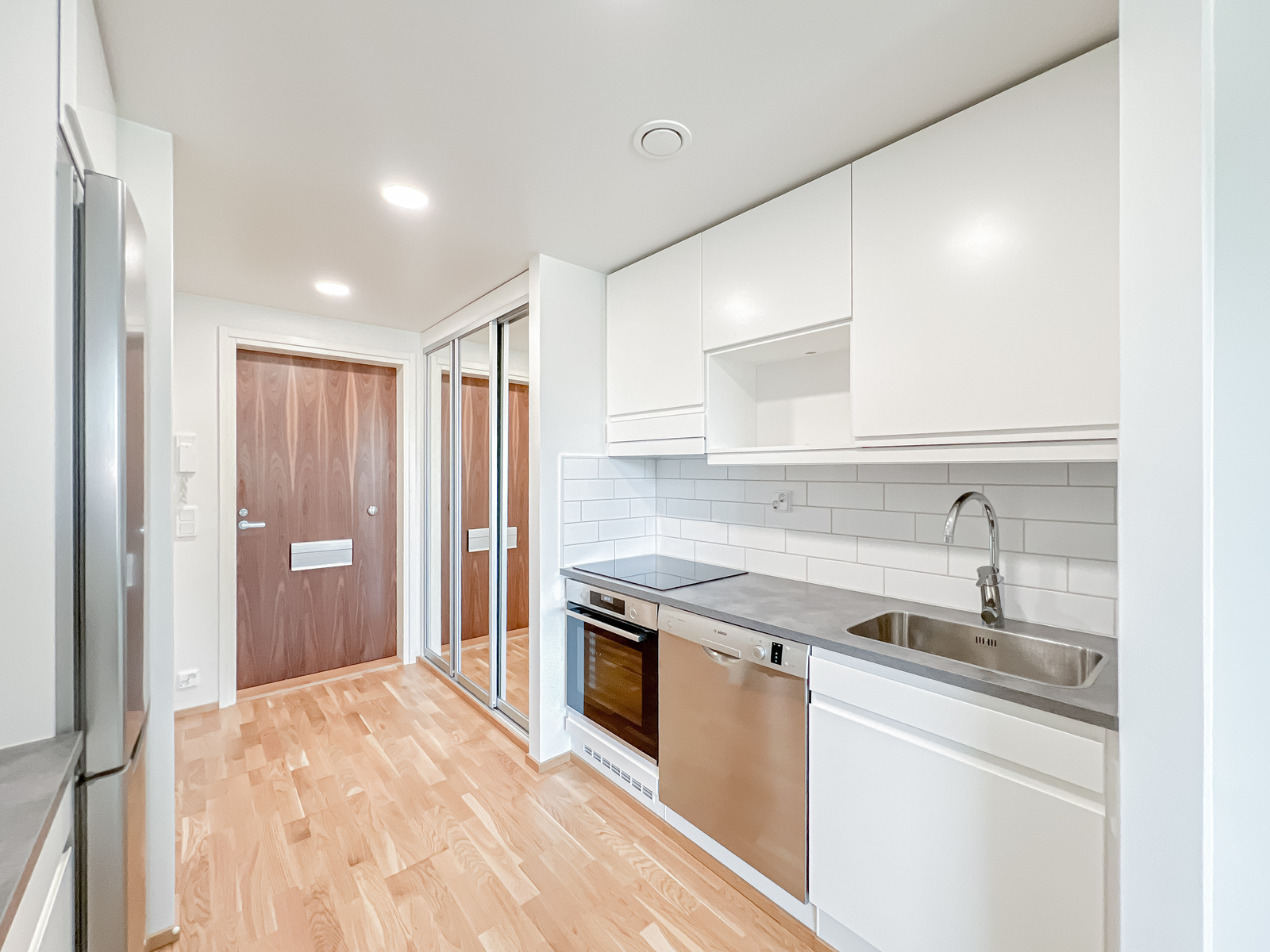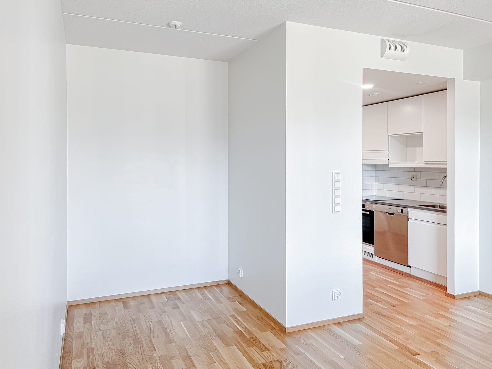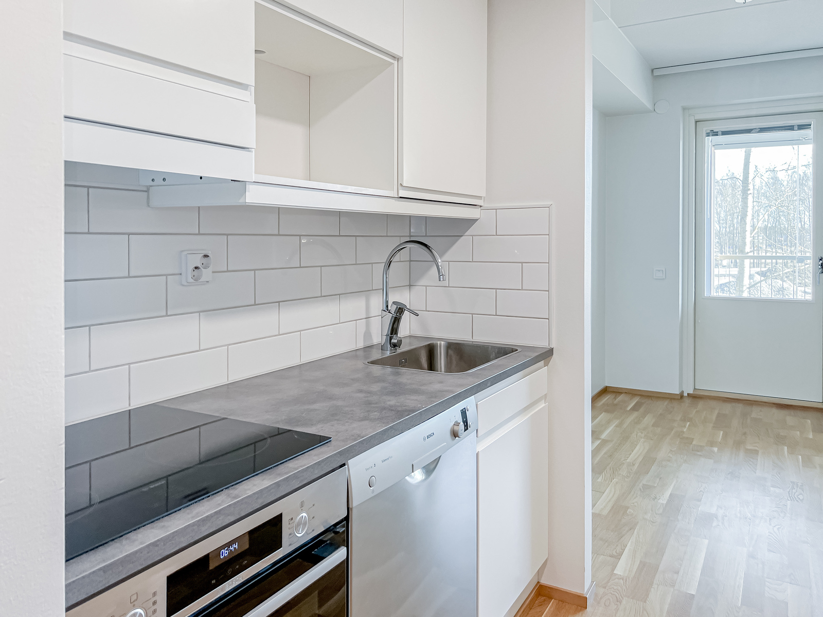 Avoin pohjaratkaisu, sekä valkeat pinnat antavat monenlaiset mahdollisuudet sisustamiselle. Keittiö on hyvin varusteltu ja laatoitetussa kylpyhuoneessa on pesukoneliitäntä. Alkovi toimii kätevästi makuunurkkauksena ja lasitettu parveke tuo mukavasti lisätilaa asumiseen.