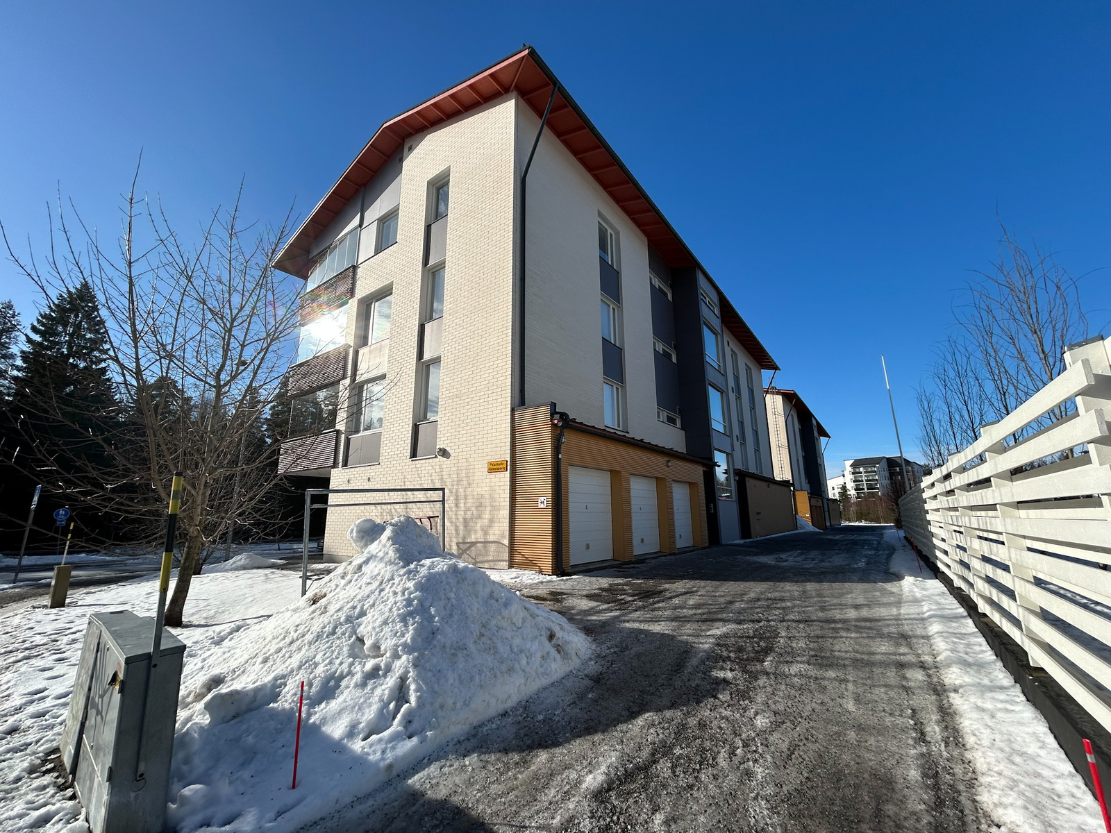 | (Taloyhtiön) Rakennukseen tehdyt korjaukset ja remontit | 2025 Ilmastointikanavien puhdistus ja säätö - Rengöring och justering av ventilationen. 2025 (A) pihapuolen ja jätetilan puuosien maalaus - Målning av gårdssidans (A) och avfallsutrymmet. 2023 Rakennuksen (B) puuosien maalaus - Målning av trädelarna byggnad (B). 2022 Salaojaputkistot ja kaivot, tarkistus ja puhdistus - Dräneringsbrunnarnas kontroll och rengöring |