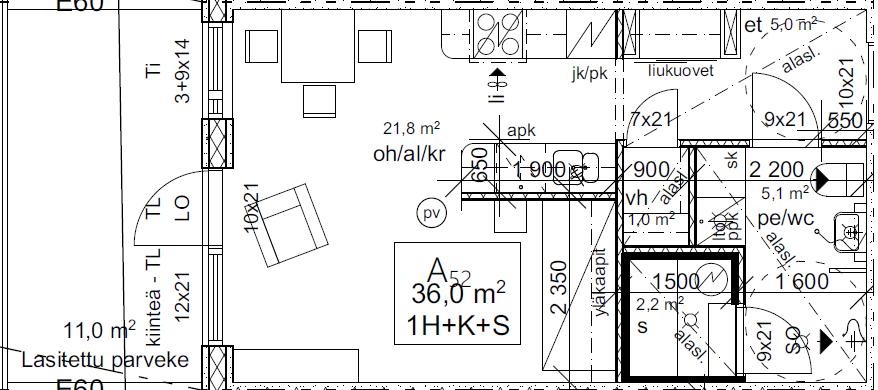 | Huoneistoselitelmä | 1h+k+s+lasitettu p |
