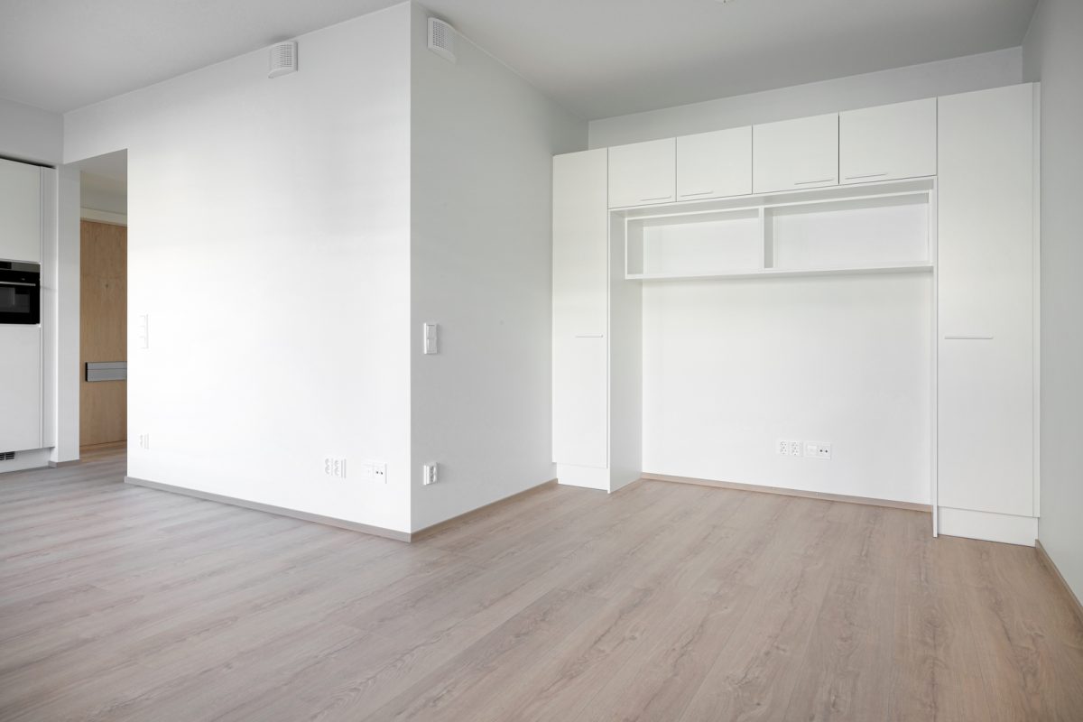 Tässä kodissa on todella toimiva pohjaratkaisu. Iso yksiö tuntuu vieläkin isommalta, kun alkoviin sängyn