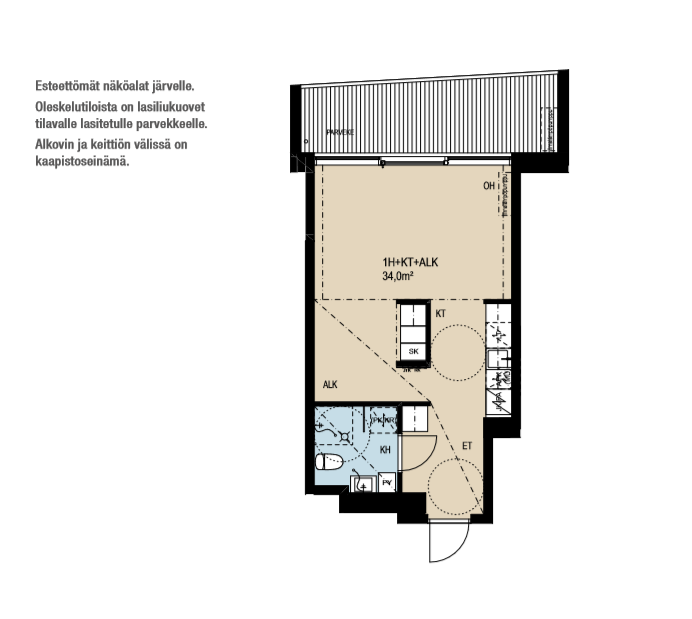 | Huoneistoselitelmä | 1h+kt+alkovi |