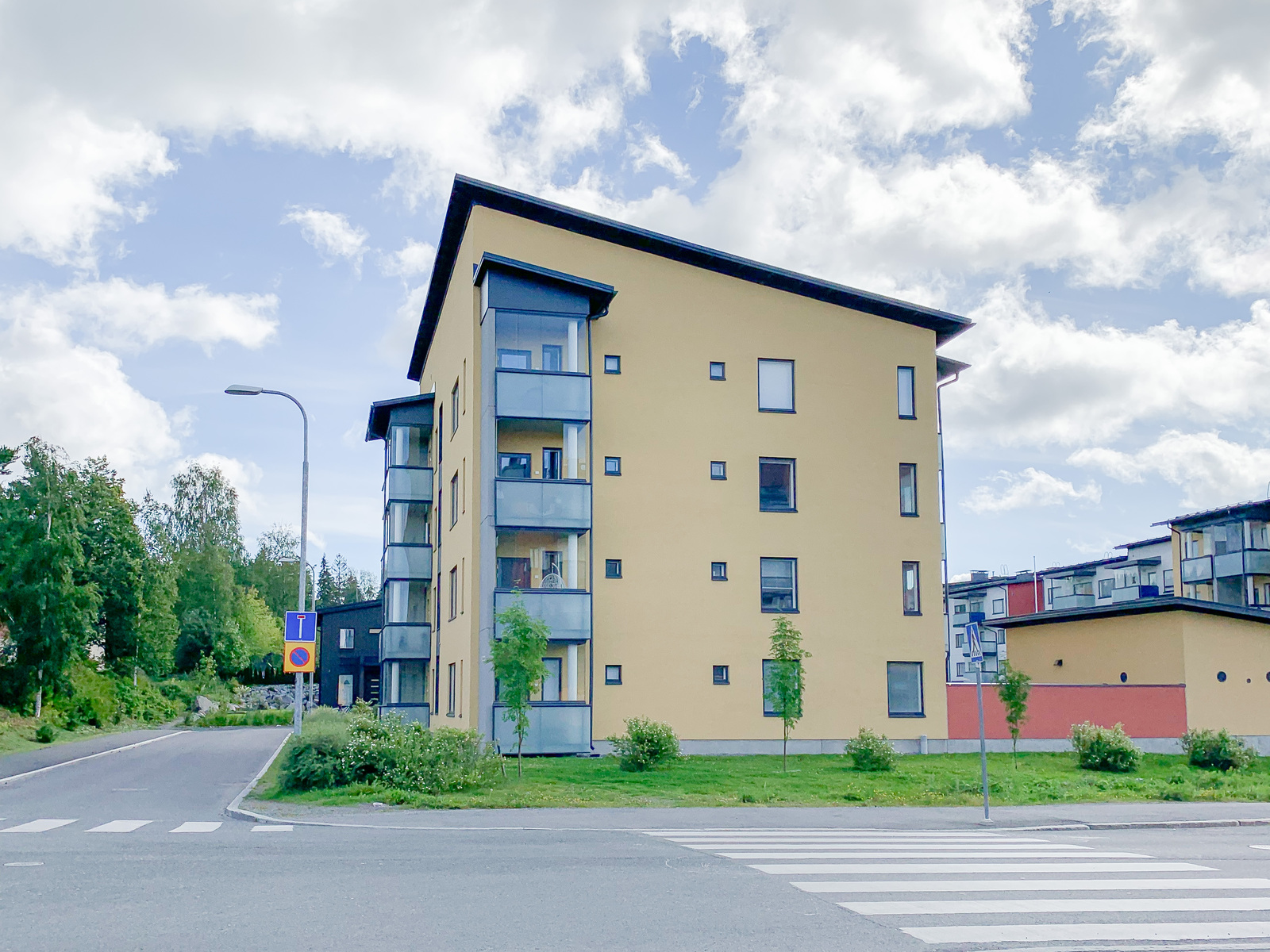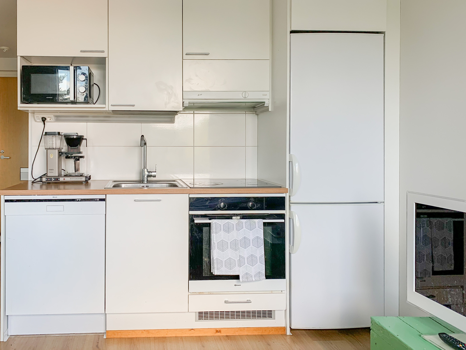 Tästä ylimmän kerroksen asunnosta on kauniit maisemat ikkunasta ja parvekkeelta. Keittiössä on astianpesukone helpottamassa arkea. Kylpyhuone on tilava ja sinne saa hyvin mahtumaan esimerkiksi pesutornin. Asunnossa on vaaleat ja modernit pintamateriaalit. Vuokraan sisältyy 25M laajakaistayhteys.