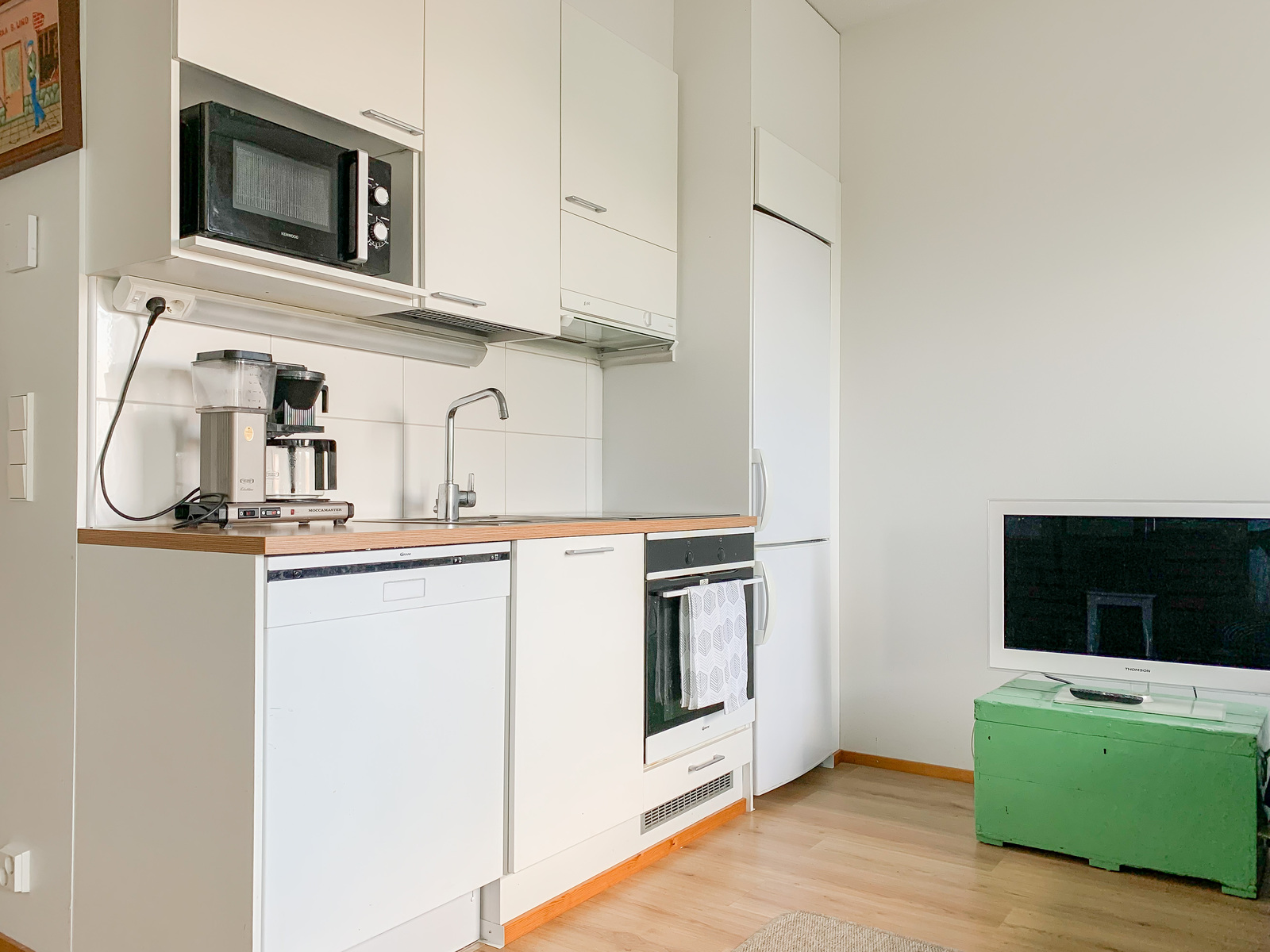Vuokrataan rauhallisesta taloyhtiöstä Haukiluomasta kompakti yksiö lasitetulla parvekkeella!