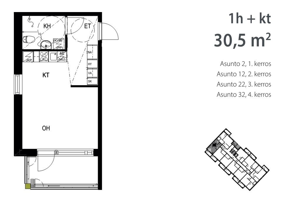 | Huoneistoselitelmä | 1h+kt+lasitettu p. |