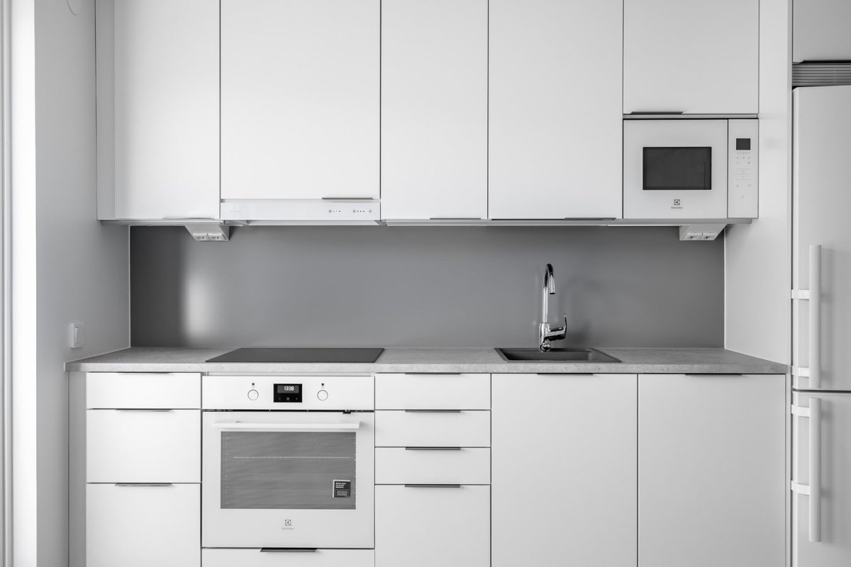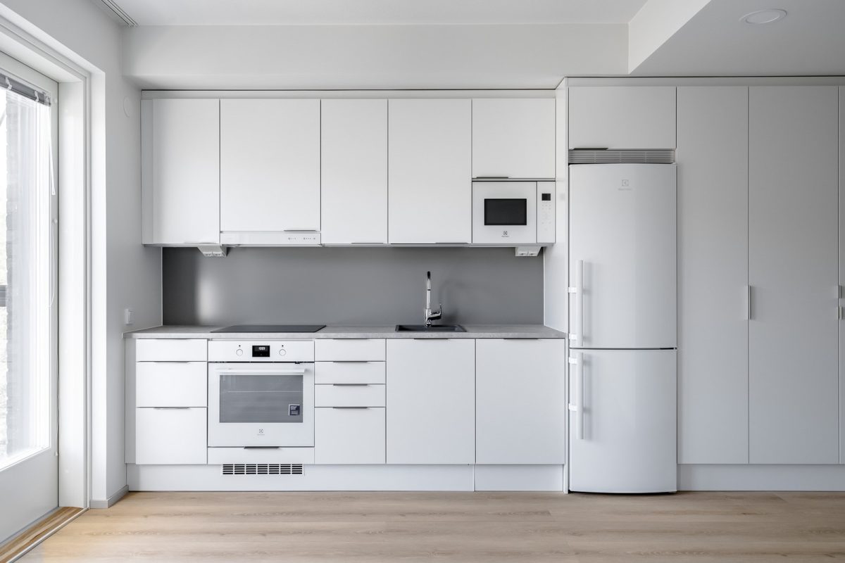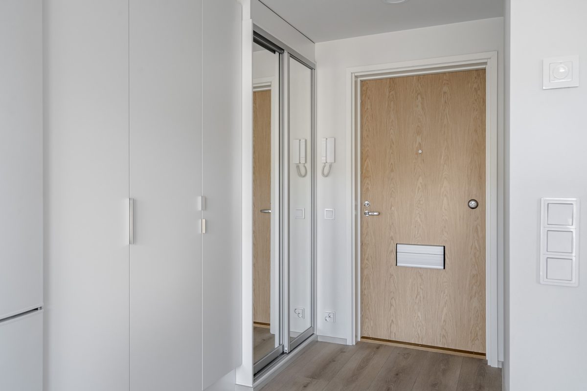 Tämä tyylikäs ja laadukkailla materiaaleilla varustettu, seitsemännen kerroksen (7/8) yksiö tarjoaa helppoa ja huoletonta asumista rauhallisella, mutta hyvin saavutettavalla sijainnilla. Asunnon käytännöllinen pohjaratkaisu tekee 30 neliöstä avarat: sängylle on oma tila, ja avokeittiö yhdistyy saumattomasti oleskelutilaan. Keittiöstä löytyvät modernit kodinkoneet ja laadukkaat pinnat. Kylpyhuone on nykyaikainen ja hyvin varusteltu. Suurten ikkunoiden ja lasitetun parvekkeen ansiosta asunto on valoisa ympäri vuoden.