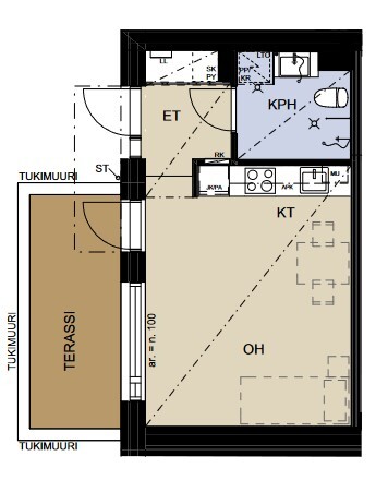 Kerrostalo 1h+kt+terassi