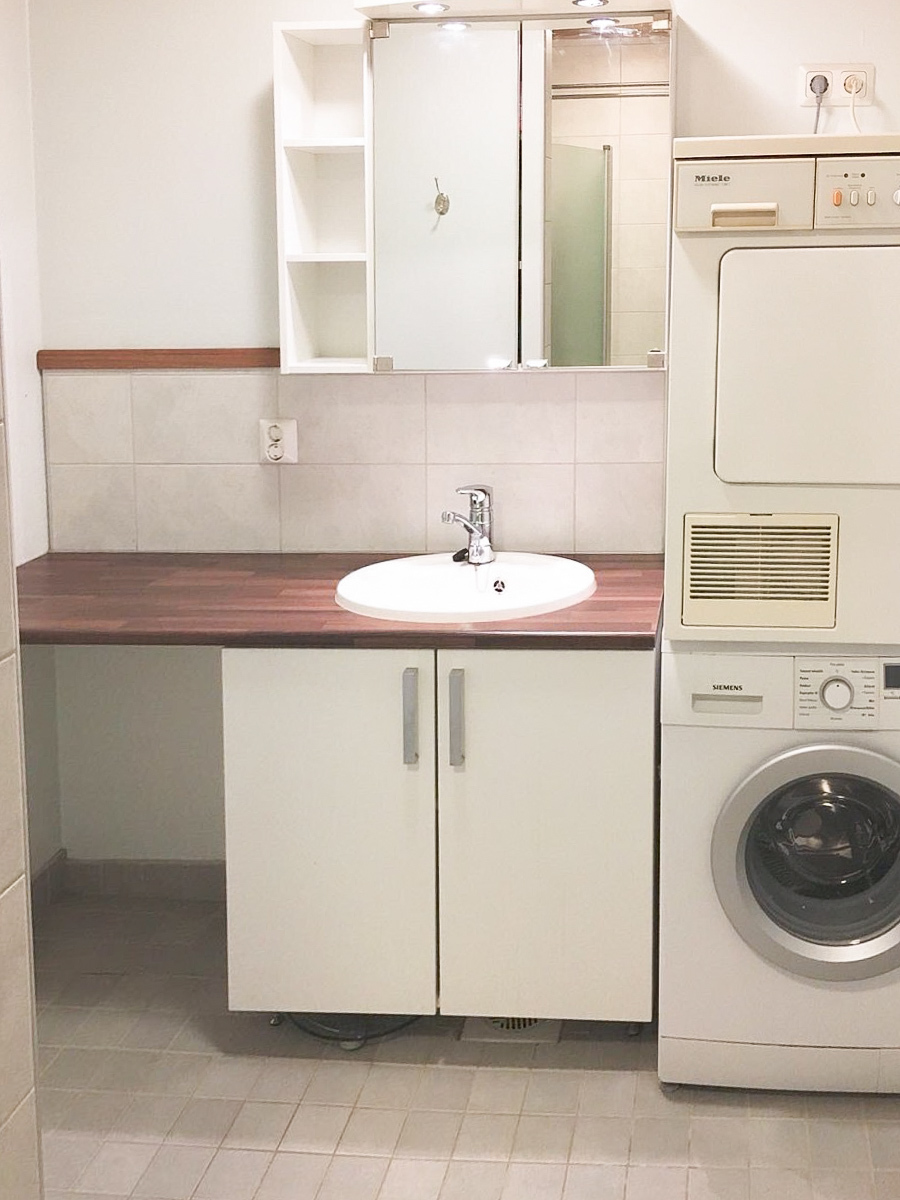 • Varusteet: pesukoneliitäntä, wc-istuin, suihku, peilikaappi