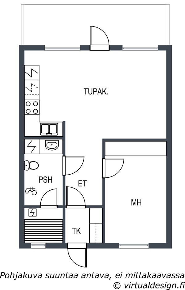HUOM! Markkinointikuvat saman taloyhtiön vastaavasta asunnosta. Kätisyys on vastakkainen, kuten pohjakuvassa.