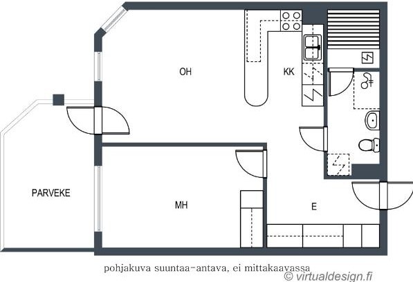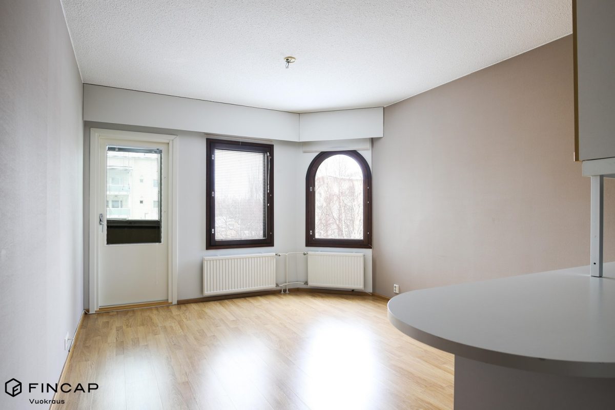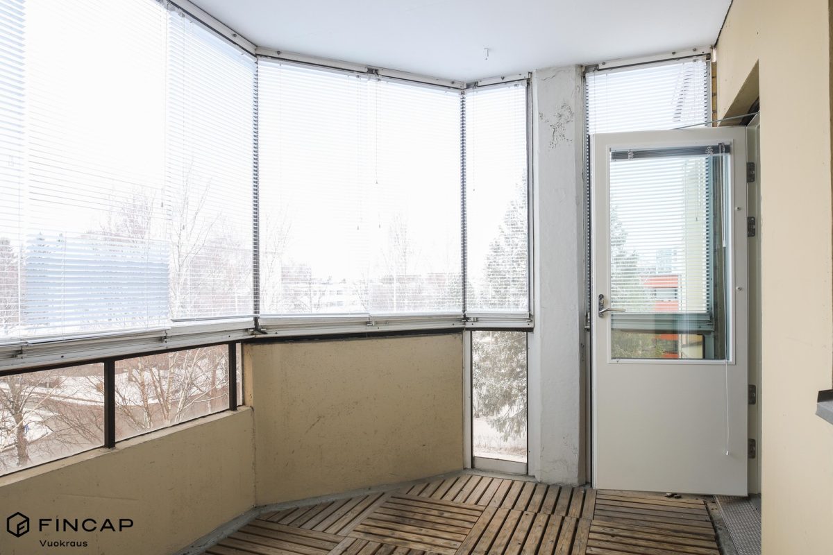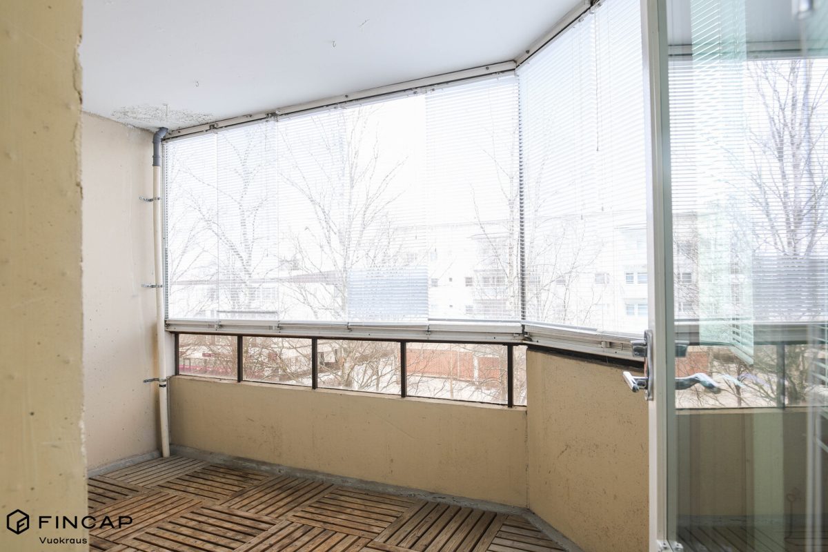 Hissitalon ylimmän kerroksen valoisa kaksio Seinäjoen keskustan tuntumassa. Asunnon tilavaan makuuhuoneeseen sopii sängyn lisäksi myös esimerkiksi työpöytä. Oleskelutiloista kulku parvekkeelle. Kuvista poikete parvekkeella ei ole lasitusta. Asunnossa on sauna sekä tilava kylpyhuone, jossa myös pesukoneliitäntä. Eteisessä sekä makuuhuoneessa on runsaasti säilytystilaa. Keskustan palvelut ovat kävelymatkan päässä.