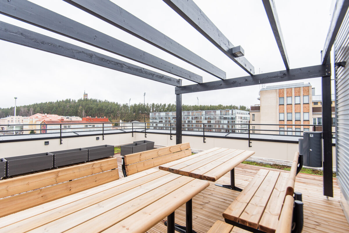 Upea viidennen kerroksen kaksio huippusijainnilta Jyväskylän ytimestä. Asuntoon kuuluu oma iso terassi. Tässä kodissa on hyvä varustelutaso ja lattialämmitys asunnon kaikissa tiloissa. B-rapun ylimmän kerroksen kattotasanteella kaikkien asukkaiden käyttöön tarkoitettu oleskelupiha. Lemmikistä neuvottelumahdollisuus.