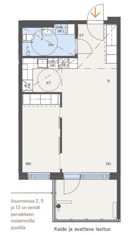 | Huoneistoselitelmä | 2h + kt + kph + parveke |