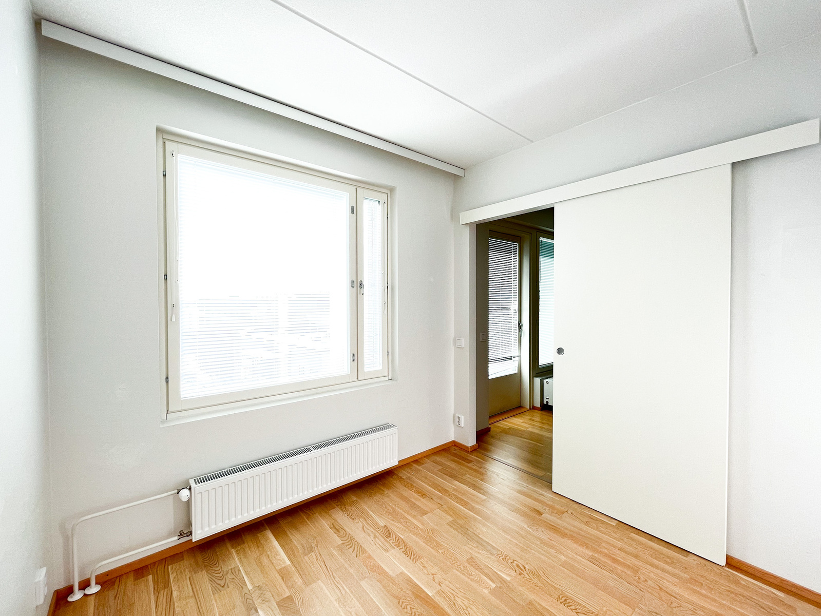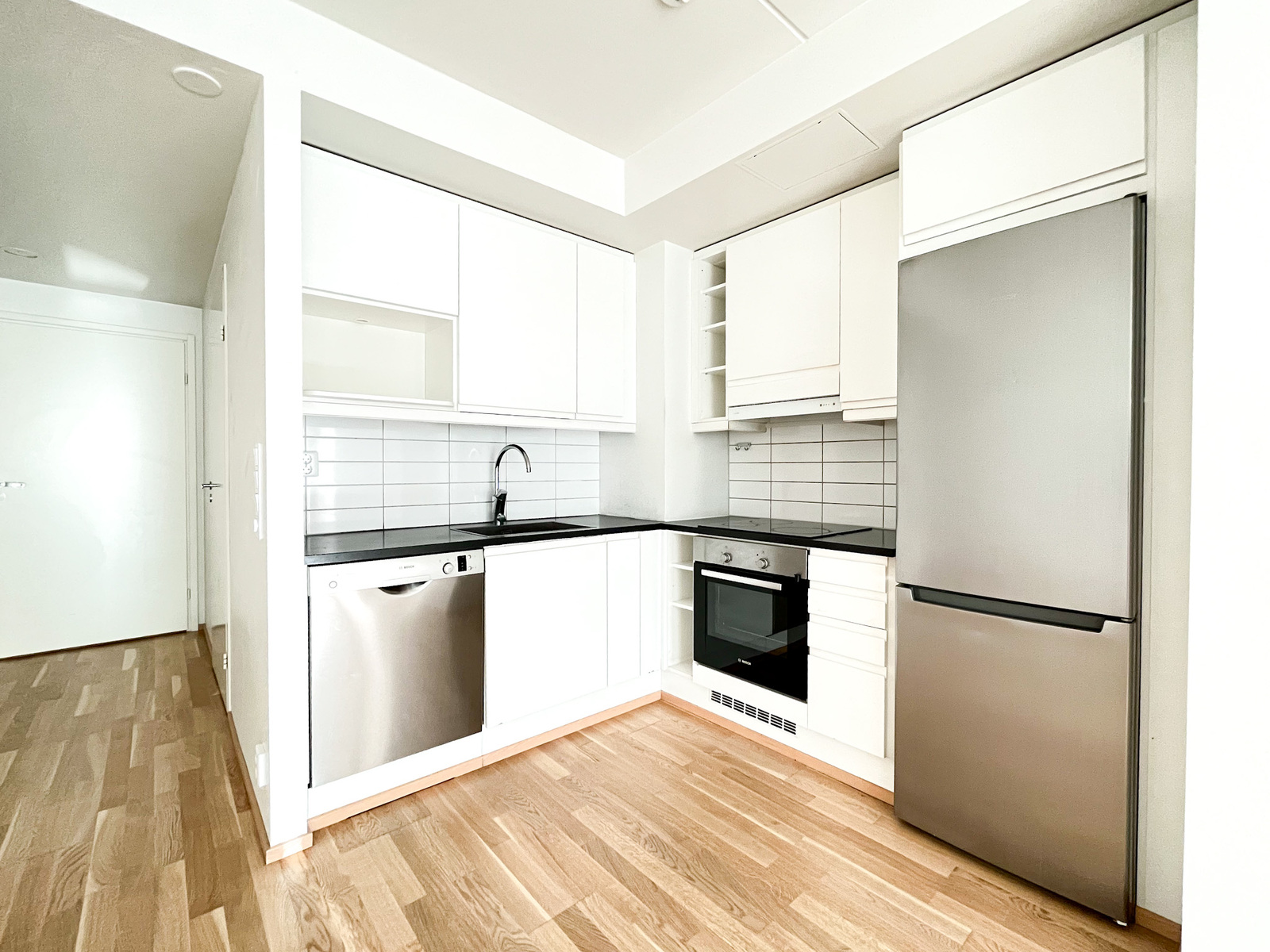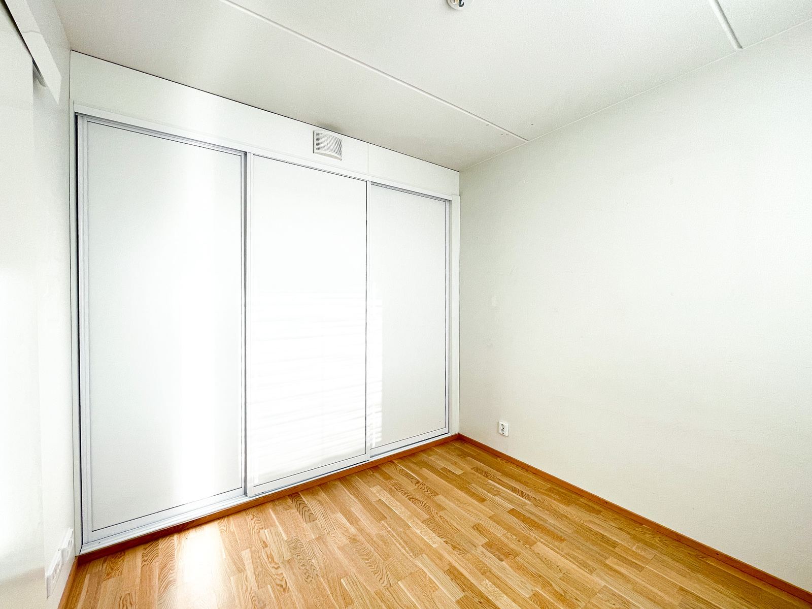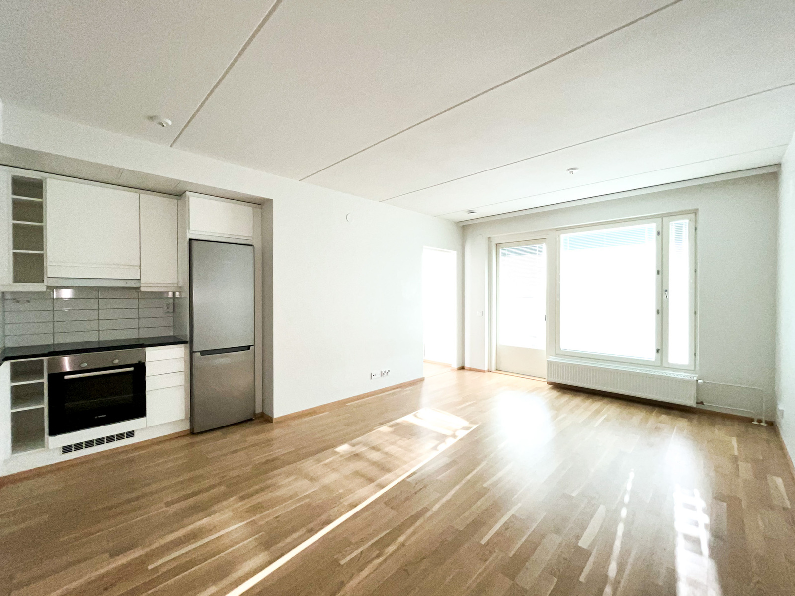 Tässä 8. kerroksen asunnossa on selkeä ja toimiva pohja, joka mahdollistaa asunnon helpon sisustamisen mieleiseksi. Tyylikkäässä avokeittiössä on tilaa työskennellä ja sieltä löytyy kaikki tarvittava. Olohuone ja keittiö ovat avointa yhteistä tilaa. Olohuoneen kautta kulku lasitetulle parvekkeelle, josta on upeat näkymät. Kaappitilaa löytyy kivasti niin eteisestä kuin makuuhuoneestakin. Kylpyhuoneesta löytyy pesukoneliitäntä.