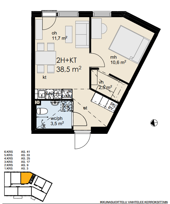 | Asuinpinta-ala m² | 38.5 m² |