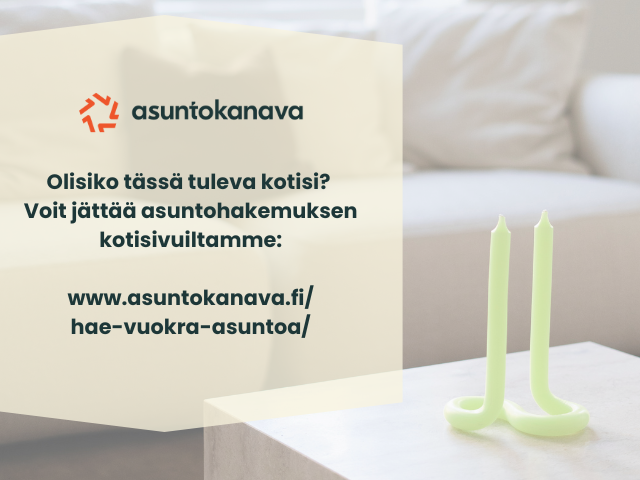 Järjestämme asuntoesittelyt asuntohakemusten perusteella, hakemus ei ole sitova. Hakemuksen voi jättää kotisivuiltamme www.asuntokanava.fi. Luottotiedot tarkistetaan ennen vuokrasopimuksen solmimista. Uudella asukkaalla tulee olla sopimuksen alkaessa vuokrakohteeseen tehty vastuuosan sisältävä kotivakuutus sekä vaadittavat vakuudet.