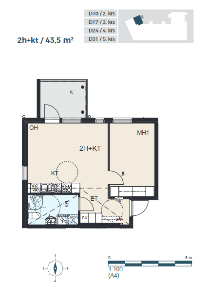 | Asuinpinta-ala m² | 43.5 m² |