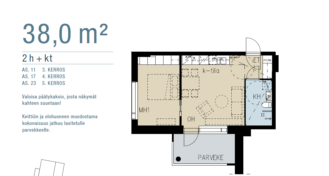 | Huoneistoselitelmä | 2h + kt + lasitettu p. |
