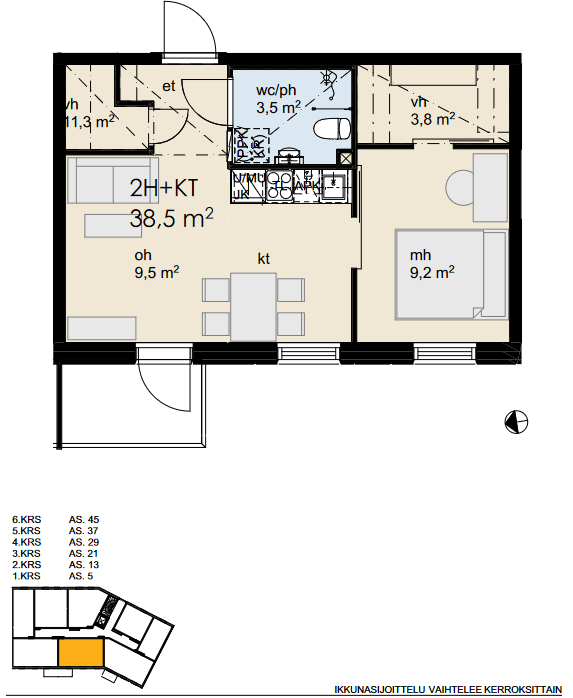 HUOM. Markkinointikuvat ovat talon vastaavasta asunnosta. Materiaalit ovat samat.