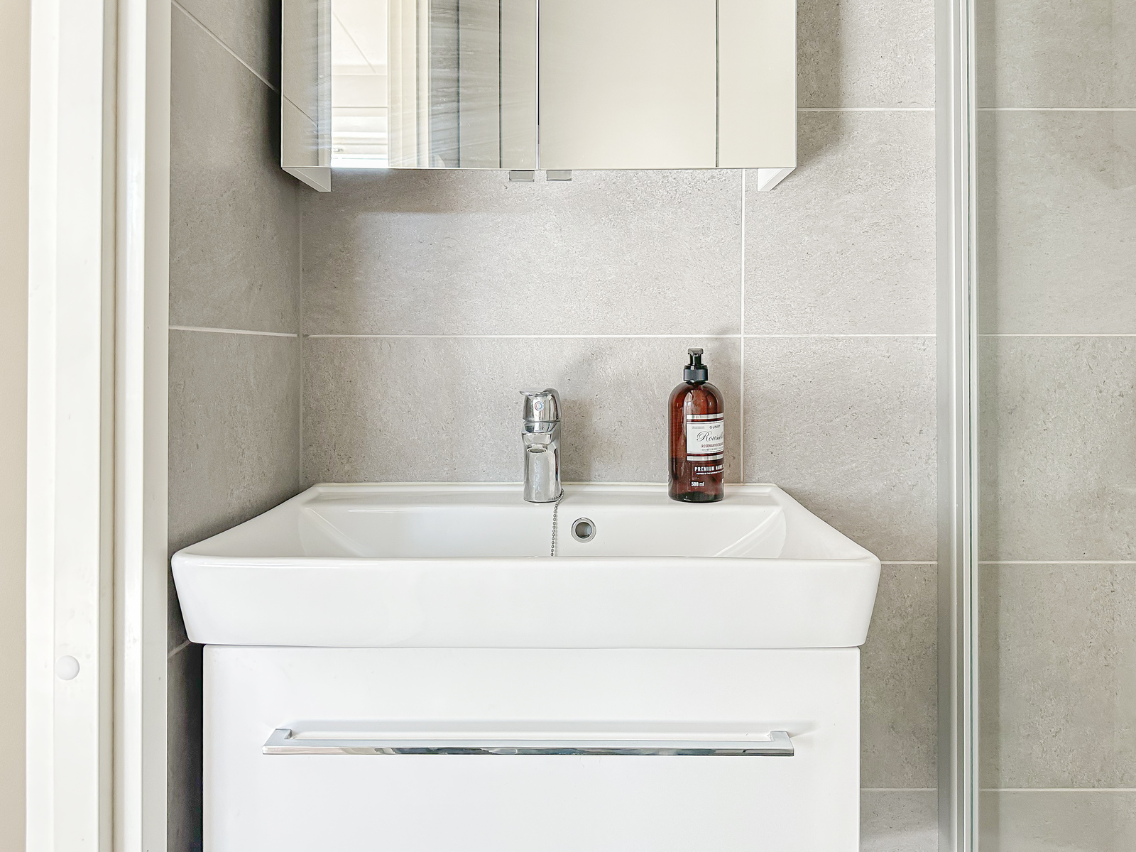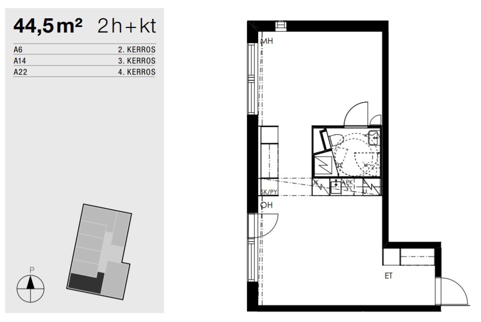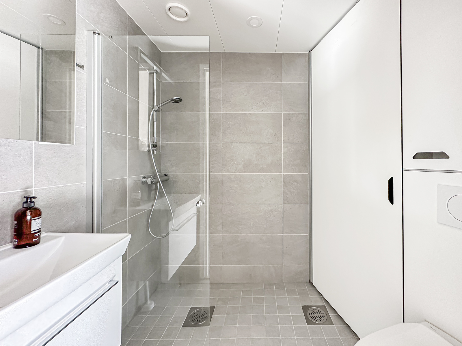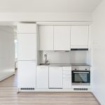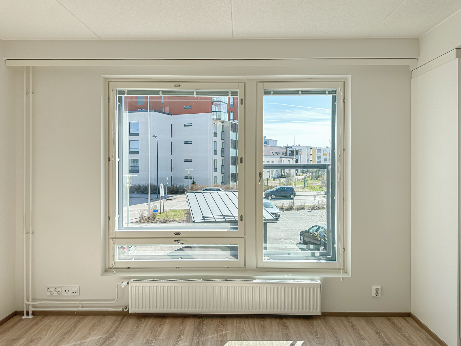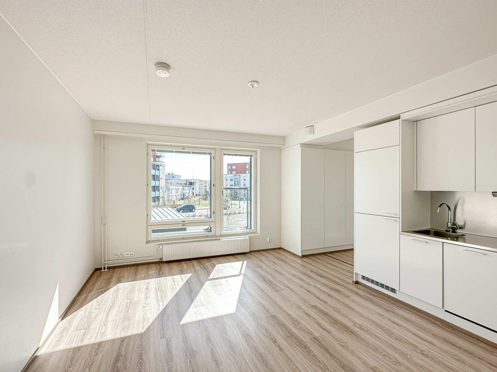 Tehokkaalla pohjaratkaisulla varustettu koti, jossa on laadukkaat materiaalit viihtyisään asumiseen. Keittiö on kompaktin kokoinen ja toimiva ja sieltä löytyy myös astianpesukone arkea helpottamaan. Kylpyhuone on tilava ja sieltä löytyy pesukoneliitäntä, joka on kätketty kätevästi kaappiin.