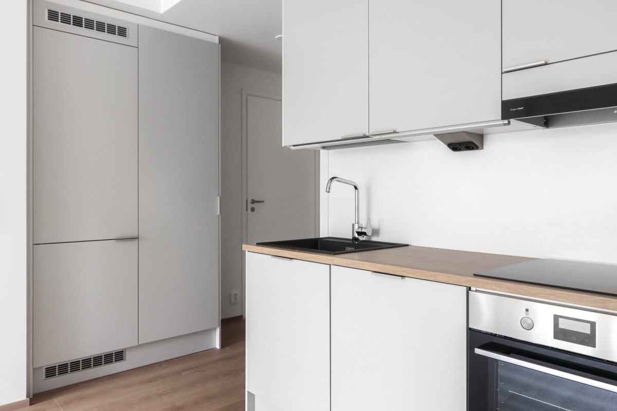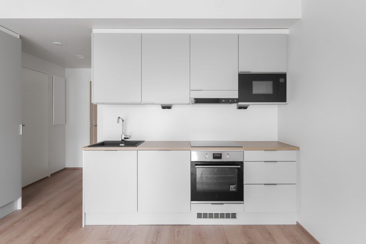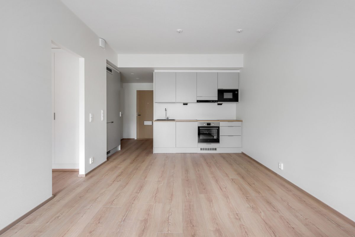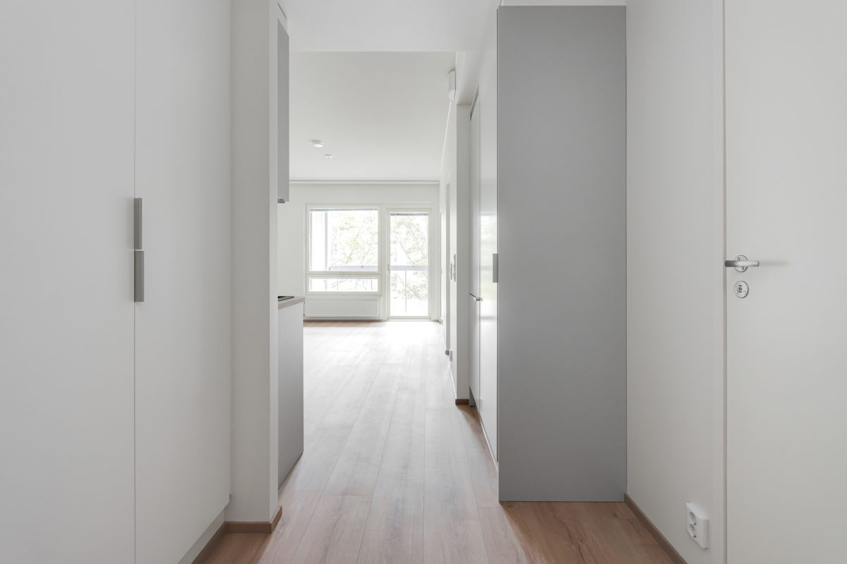 Tämän tyylikkään kaksion pohjaratkaisu on käytännöllinen; moderni ja hyvin varusteltu avokeittiö avautuu olohuoneen yhteyteen ja kompaktista makuuhuoneesta löytyy kiinteät kaapistot valmiina. Kokonaisuuden kruunaa oma lasitettu parveke! Asunnon yhteydessä vuokrataan autohallipaikka 80€/kk.