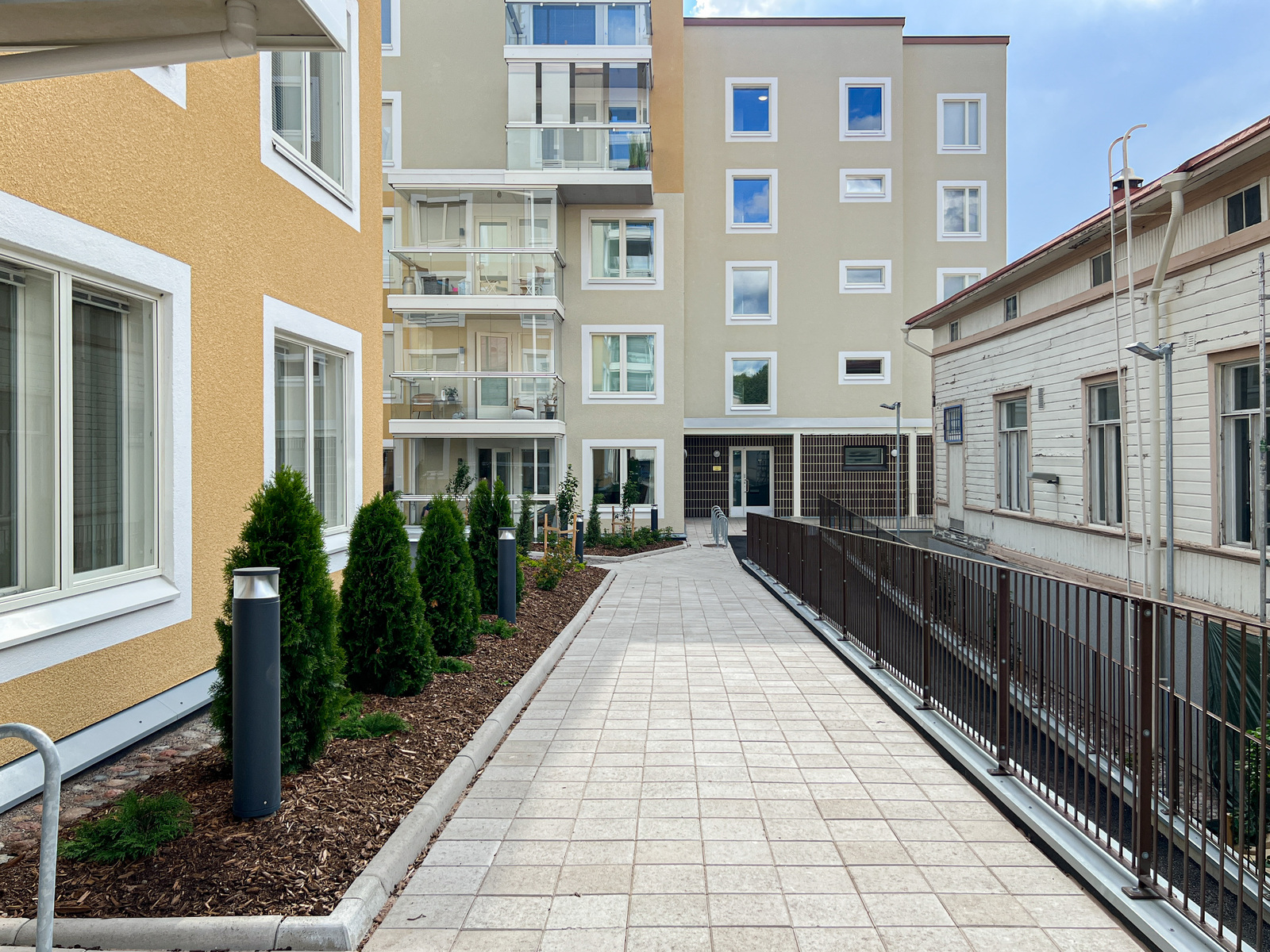 Fannyn kauniista kodistasi on lyhyt kävelymatka vapaa-ajan rientoihin ja harrastuksiin. Koko jokilaakson kattava Kansallinen kaupunkipuisto on kulman takana. Jokiranta punaisine ranta-aittoineen on vain noin puolen kilometrin päässä. Urheilukentät, uimahalli sekä Länsirannan lukuisat kulttuuritapahtumat ovat lähellä.