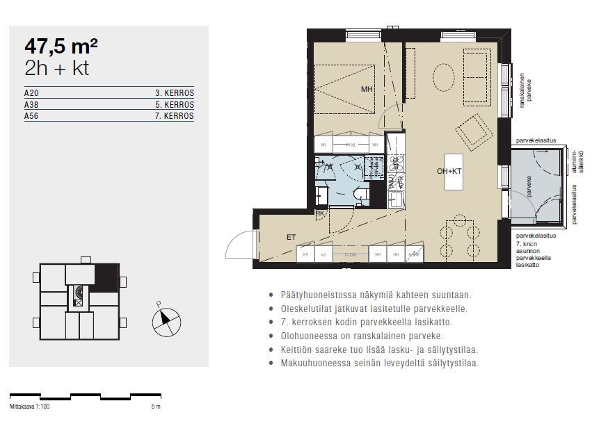 | Yhteensä m² | 47.5 m² |