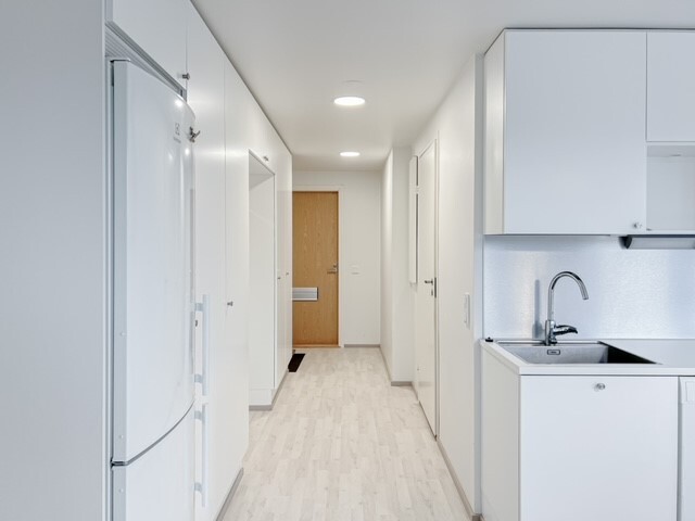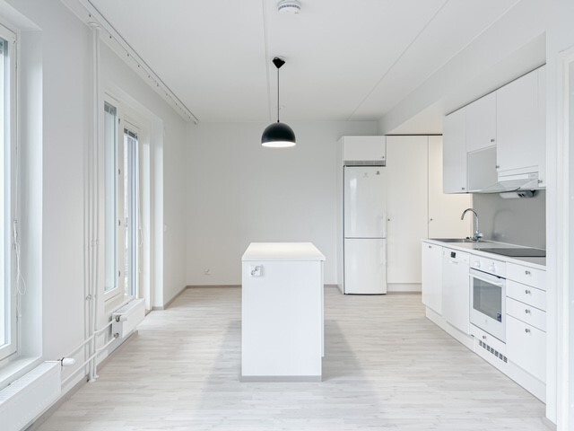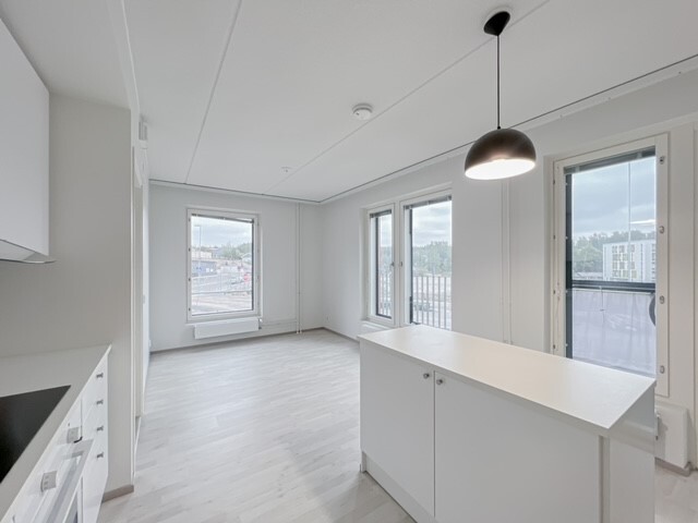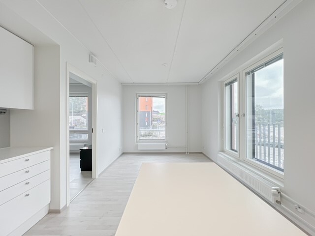 Tämä kolmannen kerroksen asunto on kodikas ja tilava, sekä varusteluiltaan moderni. Keittiö ja olohuone ovat yhteistä avointa tilaa. Keittiössä on runsaasti tilaa työskennellä ja sieltä löytyy kaikki tarvittava. Olohuoneen kautta on kulku lasitetulle parvekkeelle. Kylpyhuone on kompaktin kokoinen ja pesukoneliitäntä löytyy.