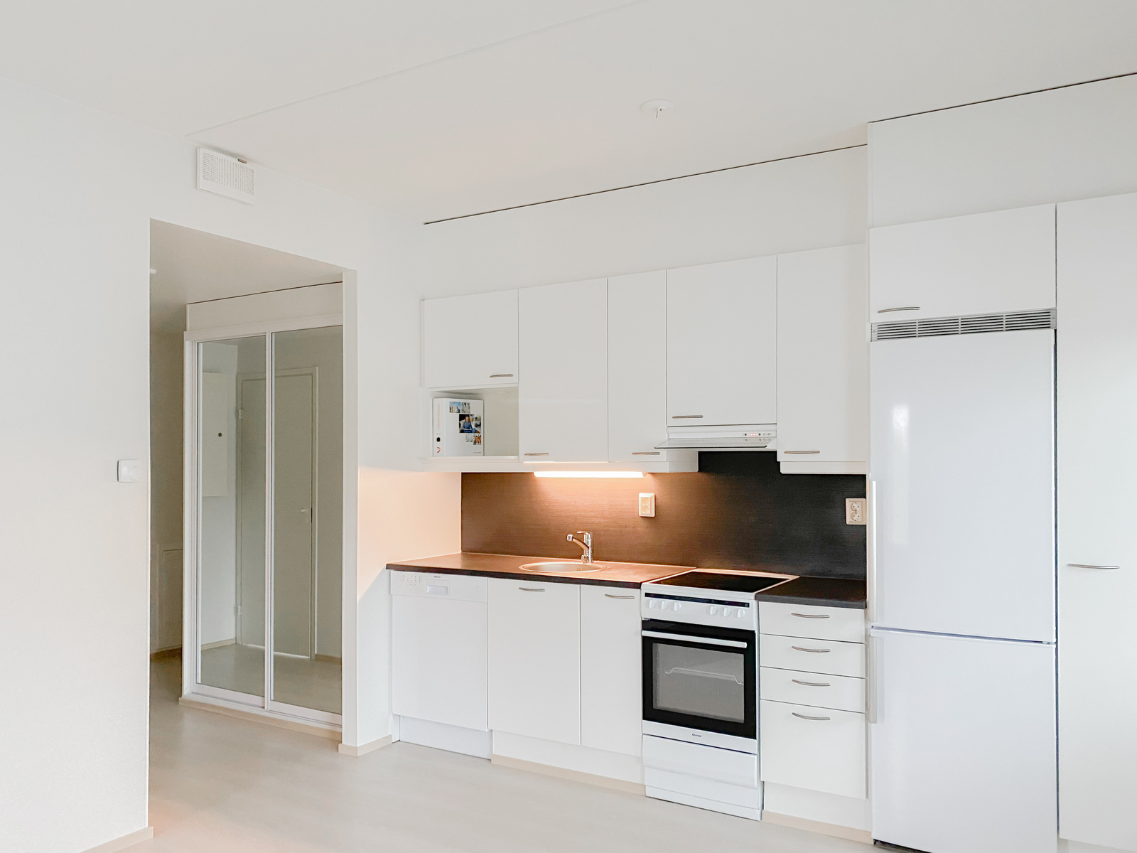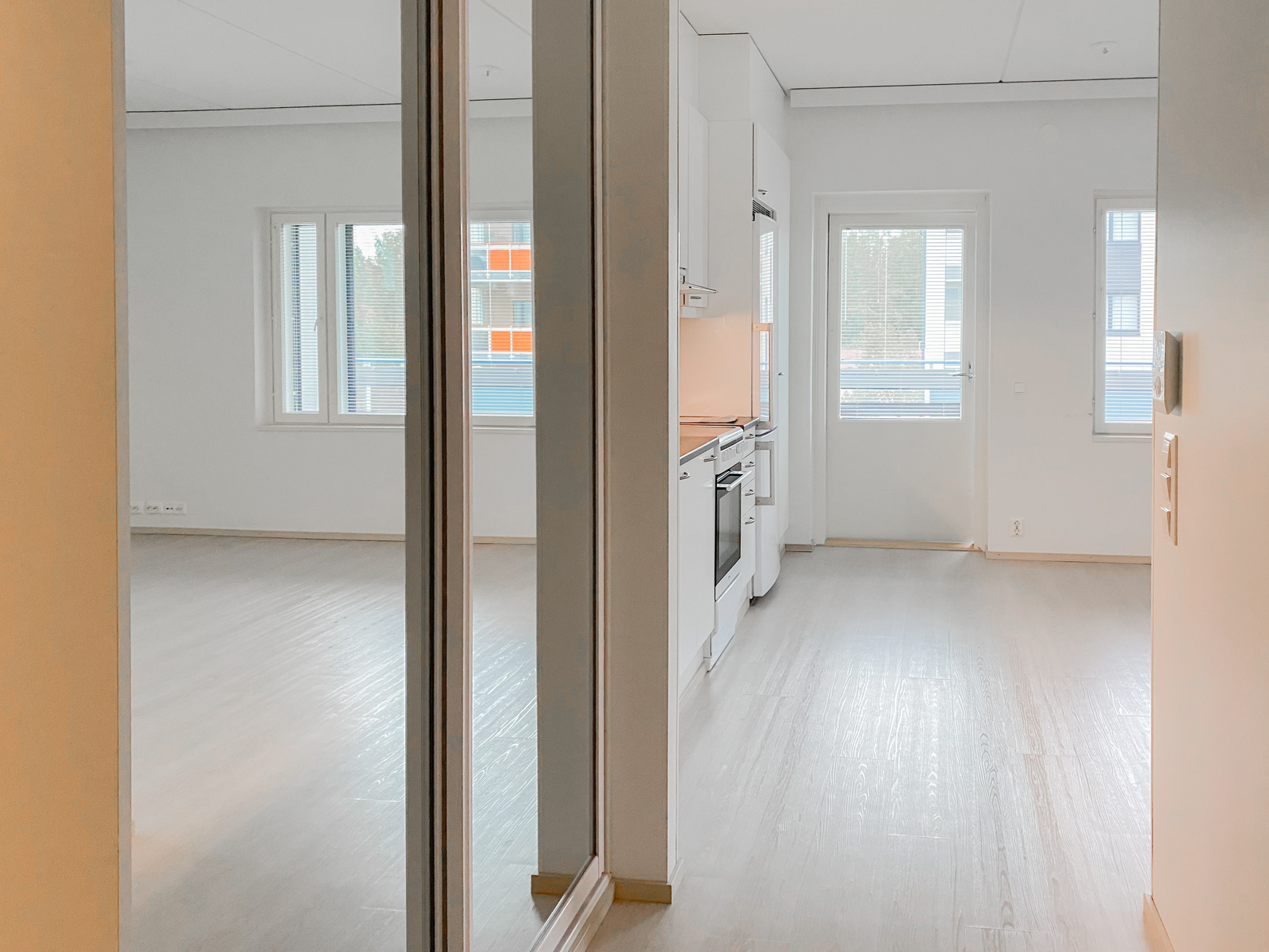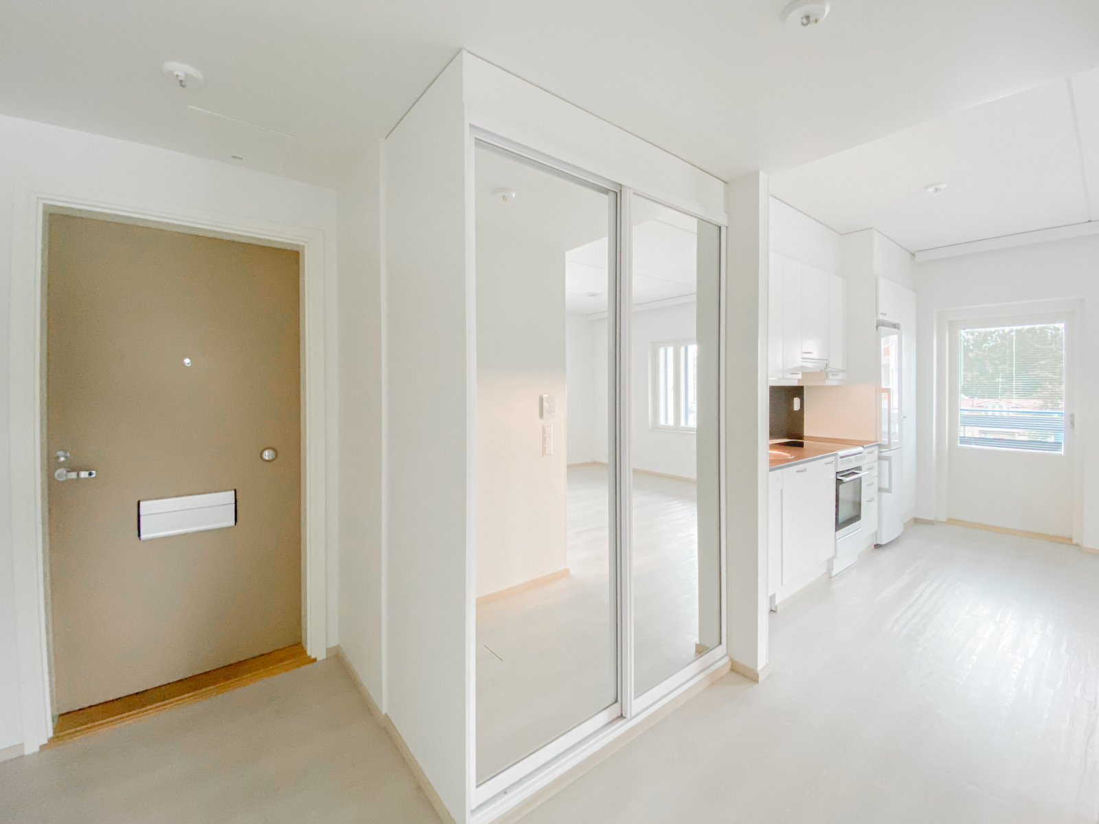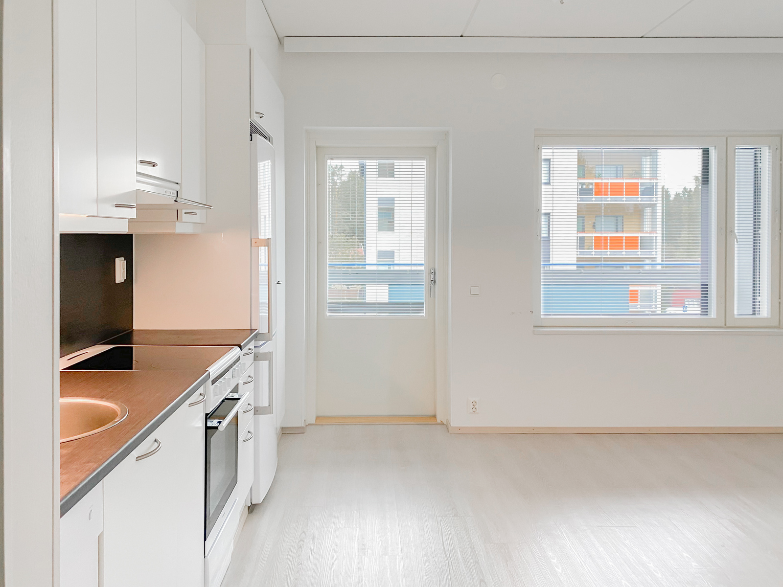 Vuokrattavana hissitalon, neljännen kerroksen valoisa kaksio. Tässä kodissa on neliöt käytetty tehokkaasti. Makuuhuoneen yhteydessä tilava makuuhuone. Olohuoneesta käynti todella tilavalle lasitetulle parvekkeelle. Vuokraan sisältyy laajakaistayhteys. Asunnon yhteydessä vuokrataan autopistokepaikka hintaan 20€/kk.