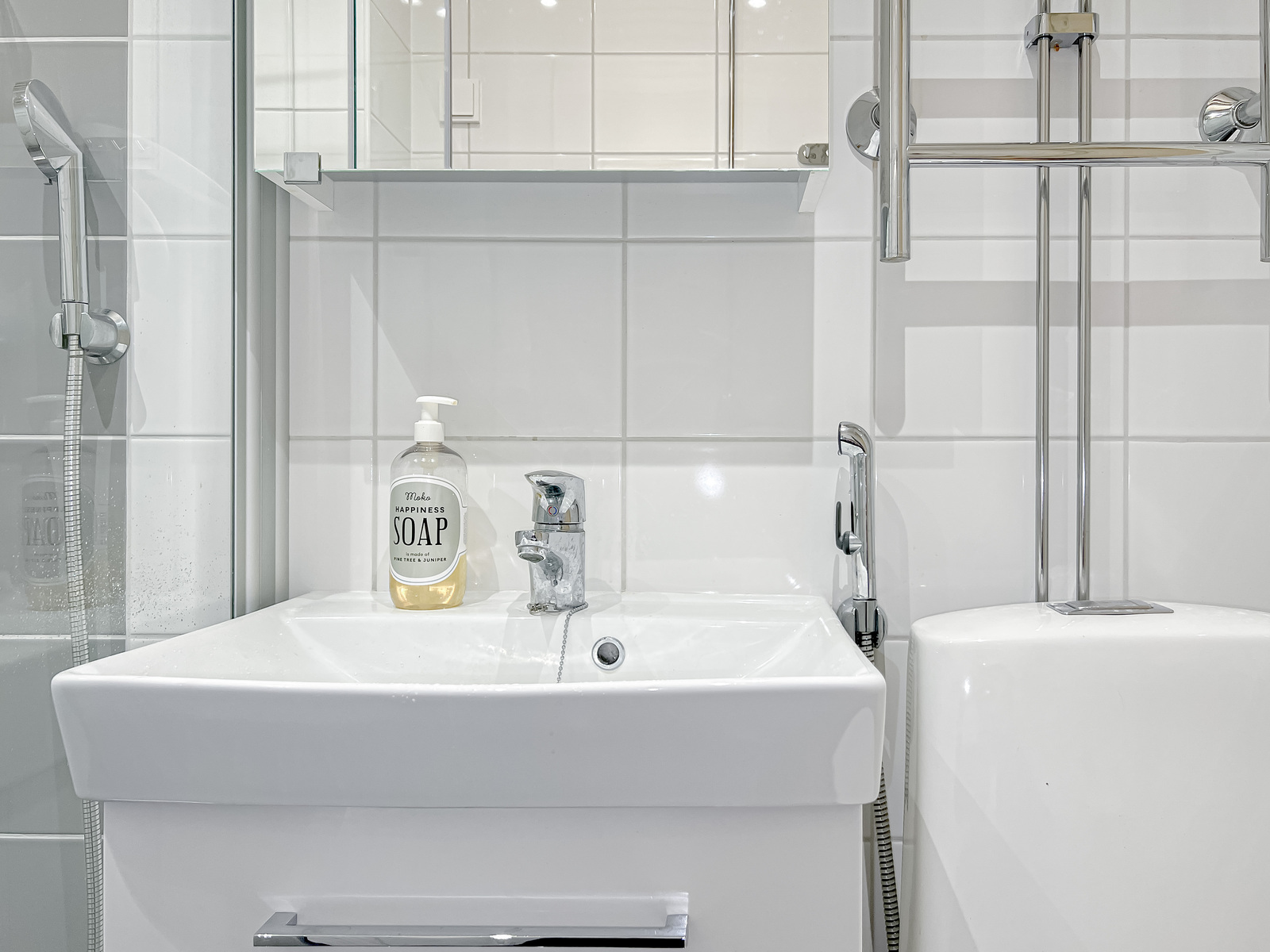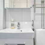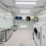 Makuuhuone on mukavan kokoinen ja säilytystilaa tuo uusittu vaatekomero, jossa on loistavat säilytysratkaisut. Kylpyhuone on myös remontoitu ja siellä on tilaa kapealle pyykinpesukoneelle. Pyykinpesu onnistuu helposti myös taloyhtiön pesutuvassa. Talon asukkaiden käytössä on myös hienot saunatilat.