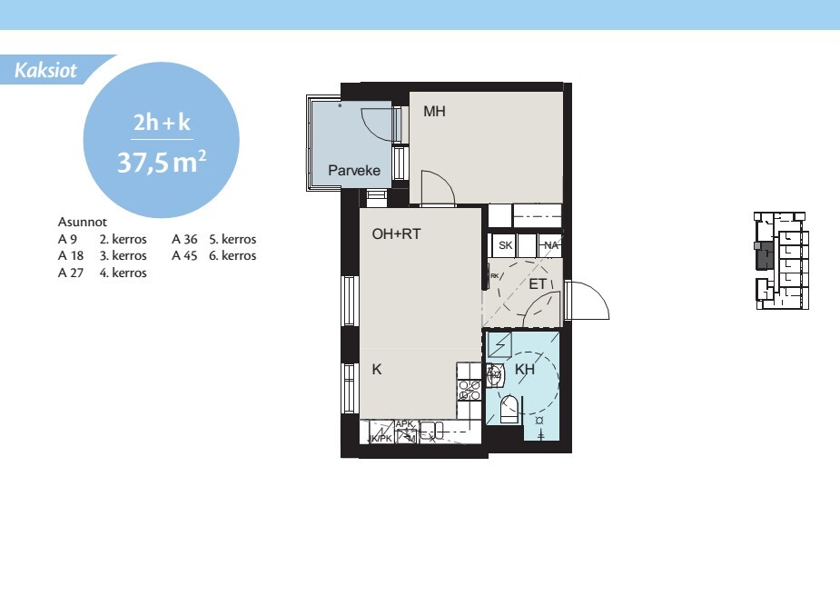 | Huoneistoselitelmä | 2h+k+lasitettu p. |