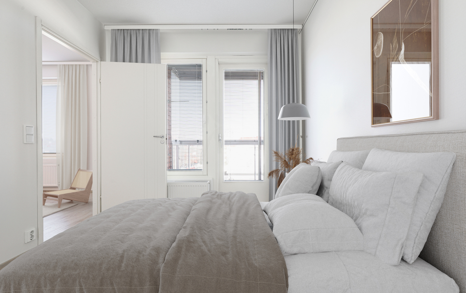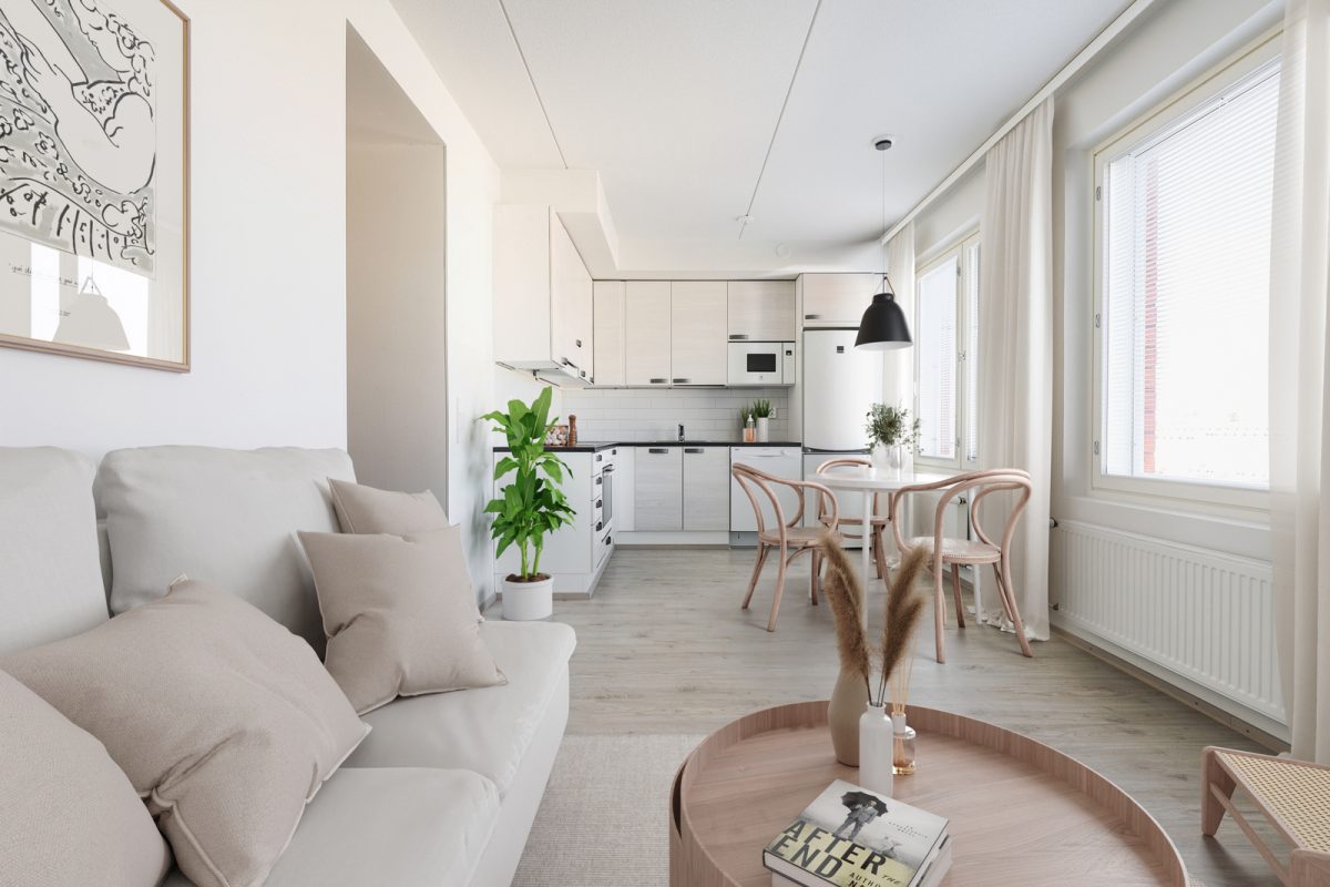 Asunnossa on erillinen keittiö, olohuone, makuuhuone sekä lasitettu parveke, joka tuo lisätilaa ja mukavuutta asumiseen pitkälle syksyyn saakka. Laadukkaat materiaalit. Pohjaratkaisu on tehokas, ja tilat ovat helposti kalustettavissa.