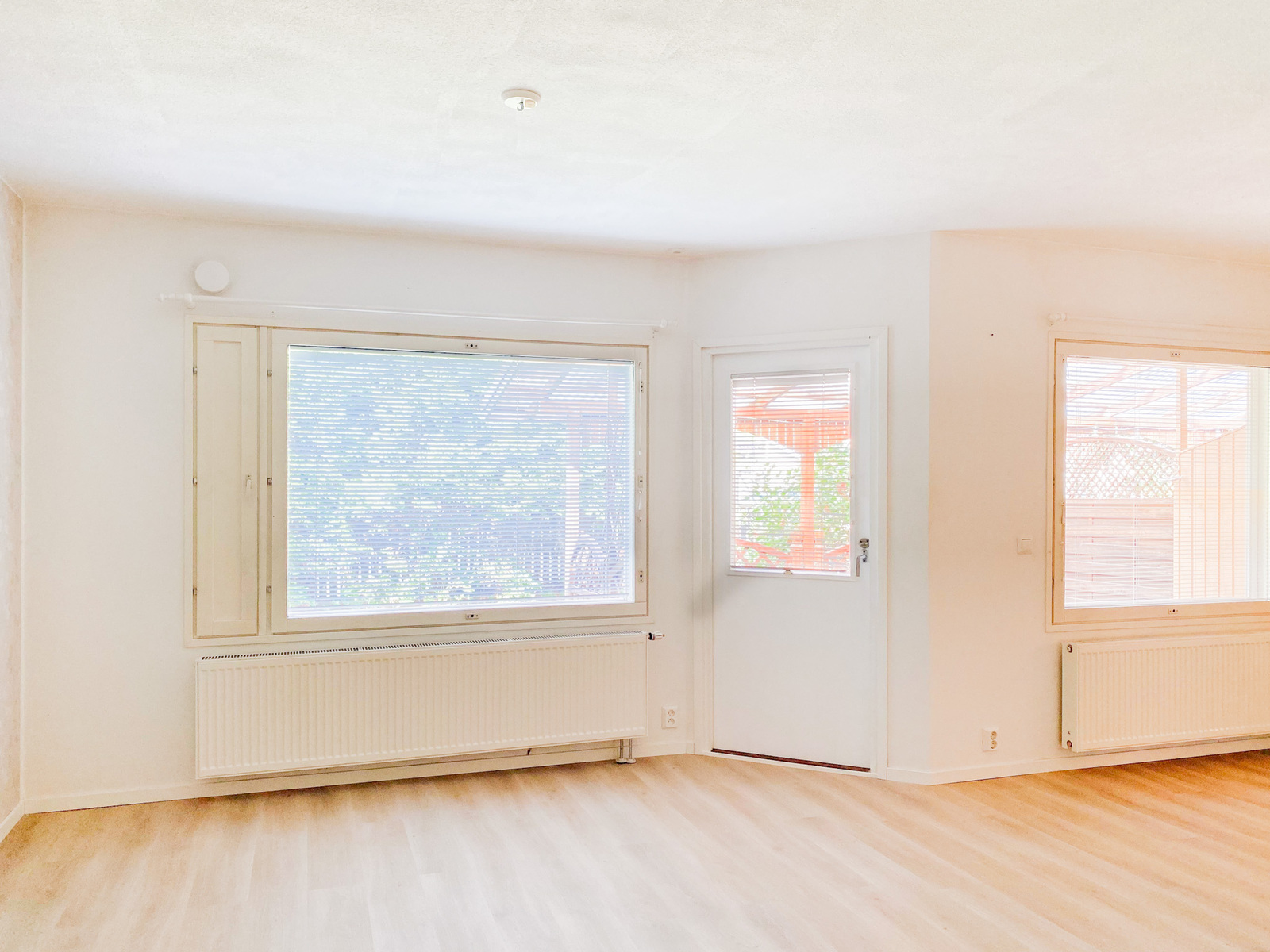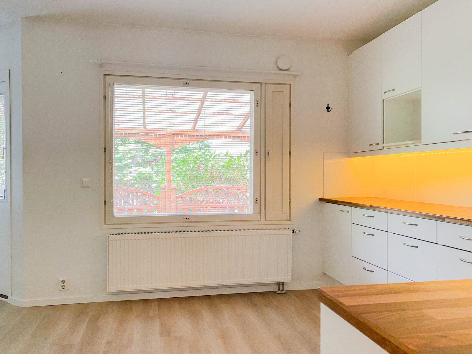 Tehdyt korjauksetHeinäkuussa 2025 asuntoon on uusittu vinyylilankku eteiseen, keittiöön ja olohuoneeseen. Jalkalistat vaihdettu ja keittiön seinä maalattu. Terassin ovi on pakkeloitu, hiottu ja maalattu. Makuuhuoneen seinät maalattu.