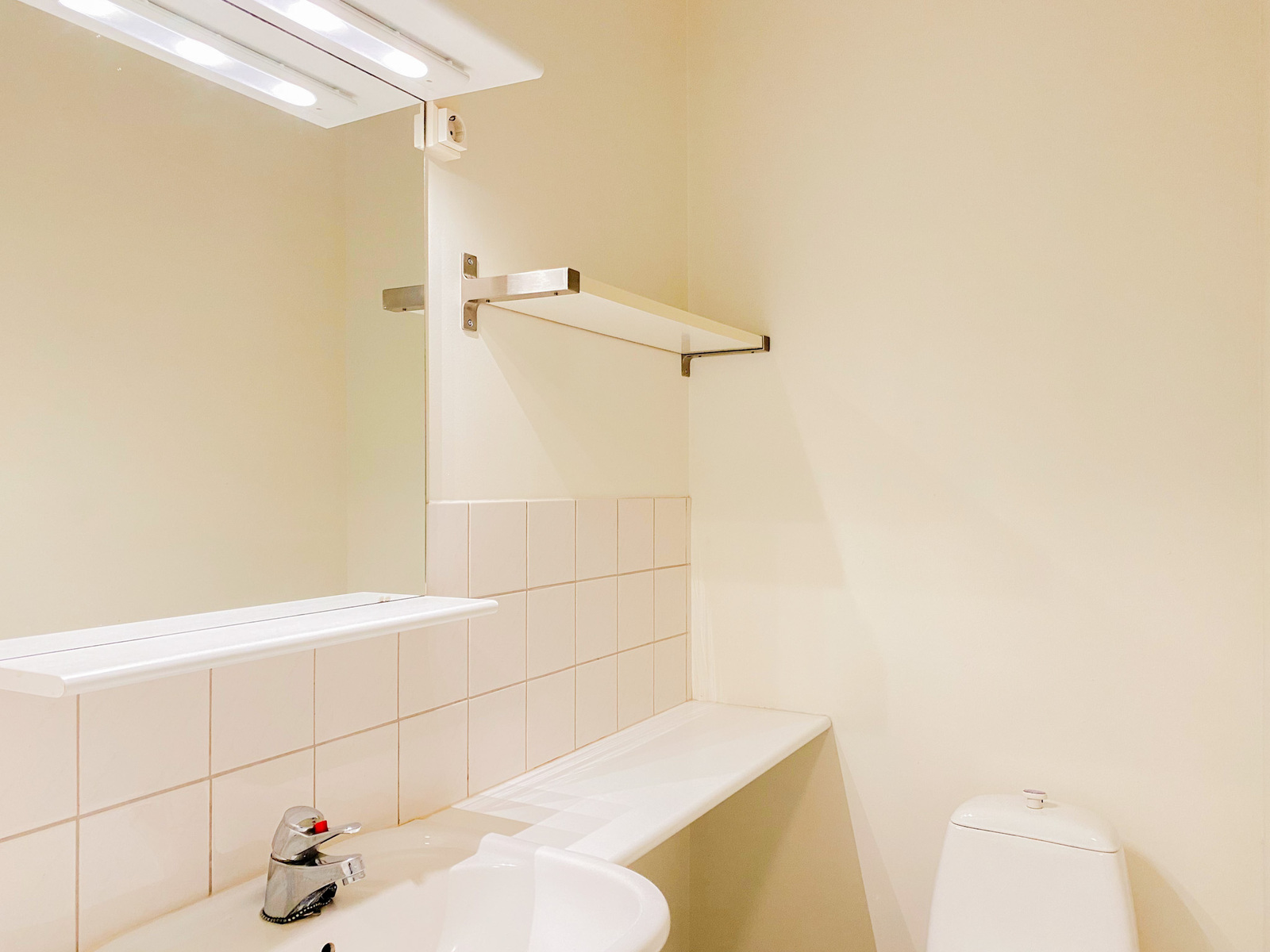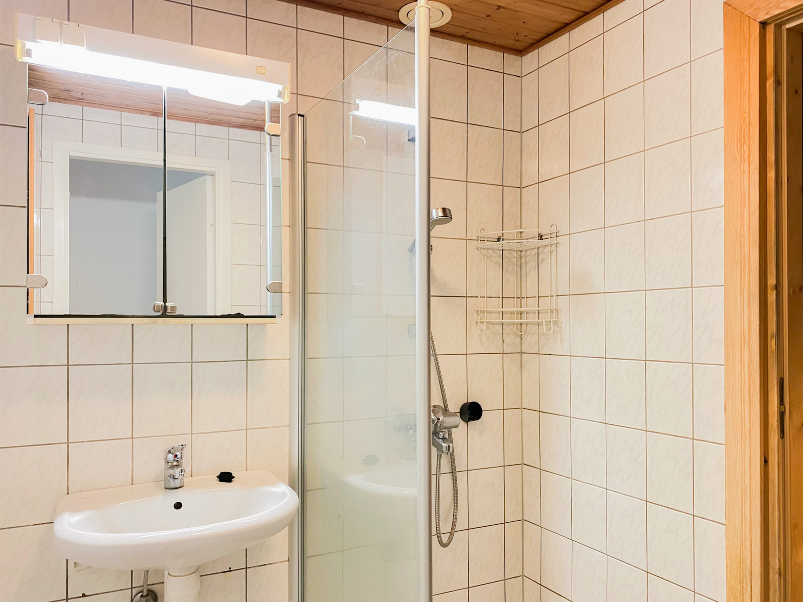 • Varusteet: suihkuseinä, pesukoneliitäntä, lattialämmitys, suihku, peilikaappi