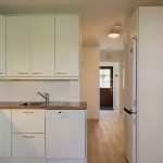 • Keittiössä, olohuoneessa, makuuhuoneessa ja eteisessä vinyyli, erillisessa wc:ssä, kylpyhuoneessa, saunassa ja tuulikaapissa laatta.