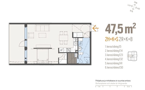 | Huoneistoselitelmä | 2h+k+s+parveke (lasitettu) |