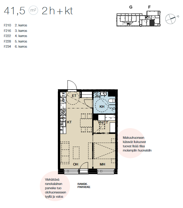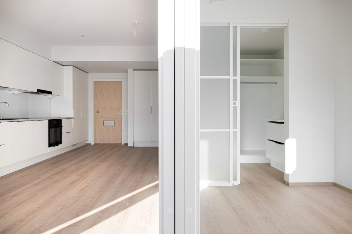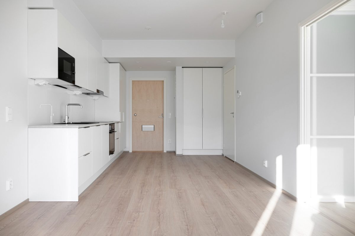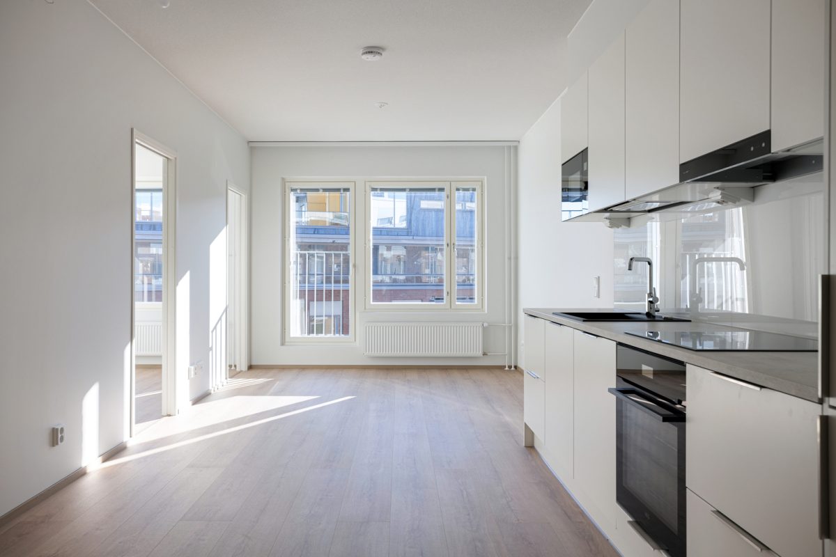 Tässä kodissa on toimiva pohjaratkaisu. Avara olohuoneen ja keittiön yhdistelmä kutsuu viihtymään. Keittiö on ajattoman tyylikäs valkoisine kaapistoineen ja integroituine kodinkoneineen. Kylpyhuone on kauniisti laatoitettu ja siellä on paikka omalle pyykinpesukoneelle. Makuuhuoneessa tilava vaatehuone tyylikkäillä maitolasiliukuovilla. Huoneiston yhteydessä vuokrataan autopaikka 80€/kk.