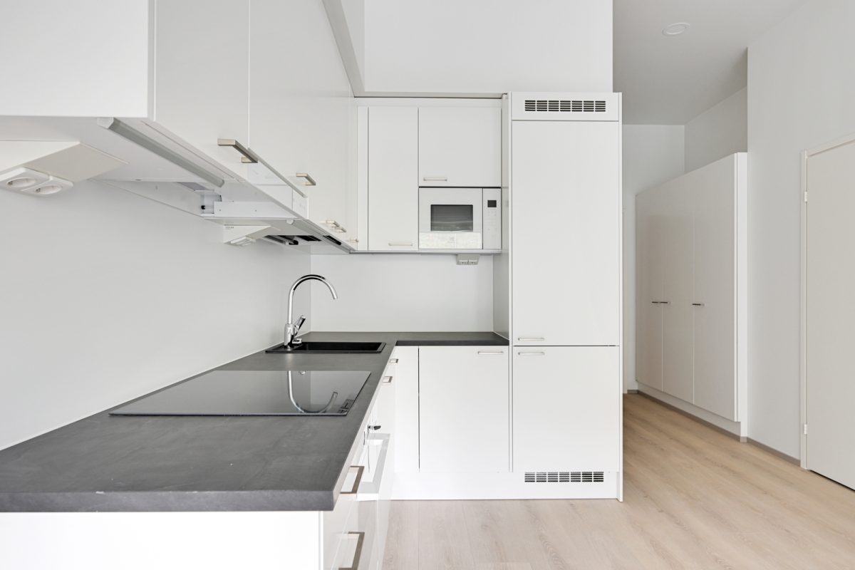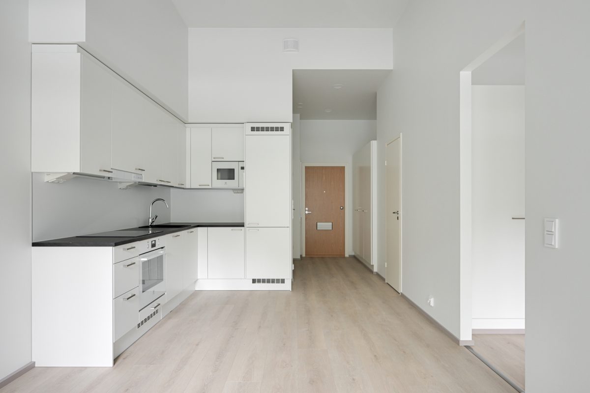 Vuokrattavana uusi kaksio taloyhtiön ensimmäisestä (1/5) kerroksesta Helsingin Kuninkaantammessa. Tyylikkäät ja ajattomat materiaalit, mm. integroidut kodinkoneet. Eteisessä on sekä kaappitilaa että todella tilava vaatehuone tehokkaaseen säilytykseen. Myös makuuhuoneessa on kaapistot. Huoneiston kruunaa suuri, tilava lasitettu parveke. Mahdollisuus vuokrata autohallipaikka 80€/kk.