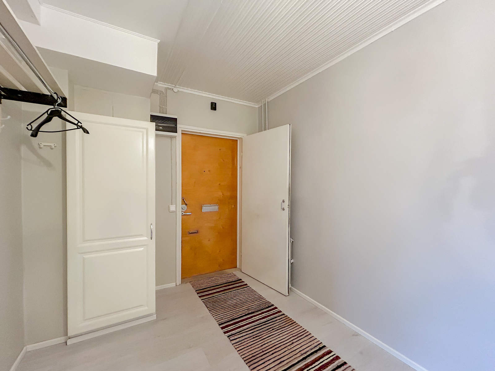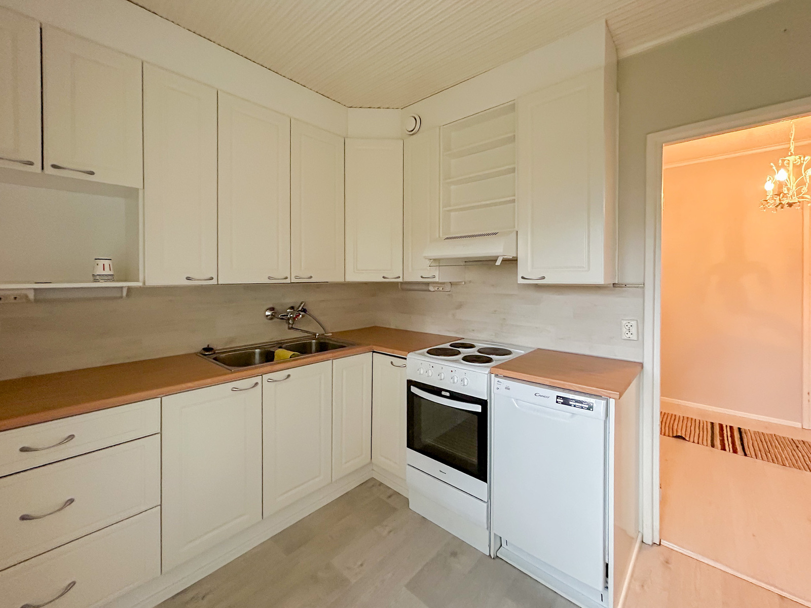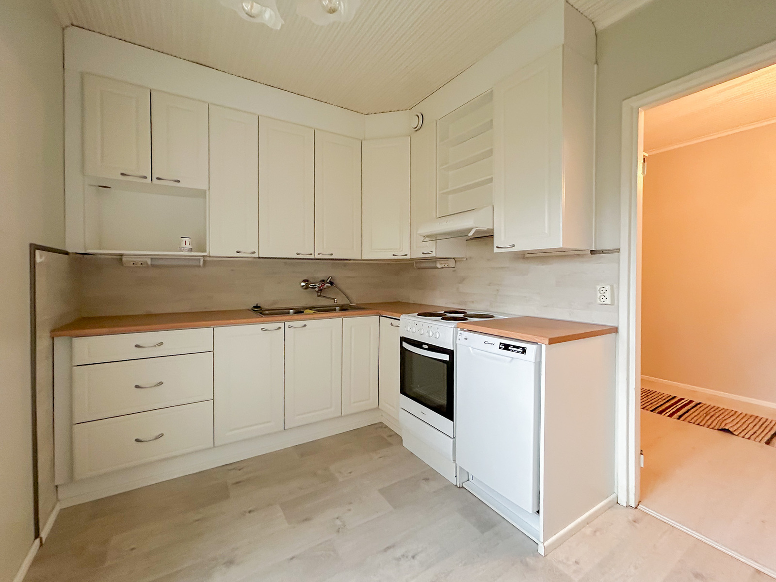 Läheltä löytyvät koulu, päiväkoti, kauppa ja ulkoilureitit. Asunnossa on keittiö ja kaksi erillistä huonetta, jotka sopivat olohuoneeksi ja makuuhuoneeksi tai kahdelle erilliseksi makuutilaksi.