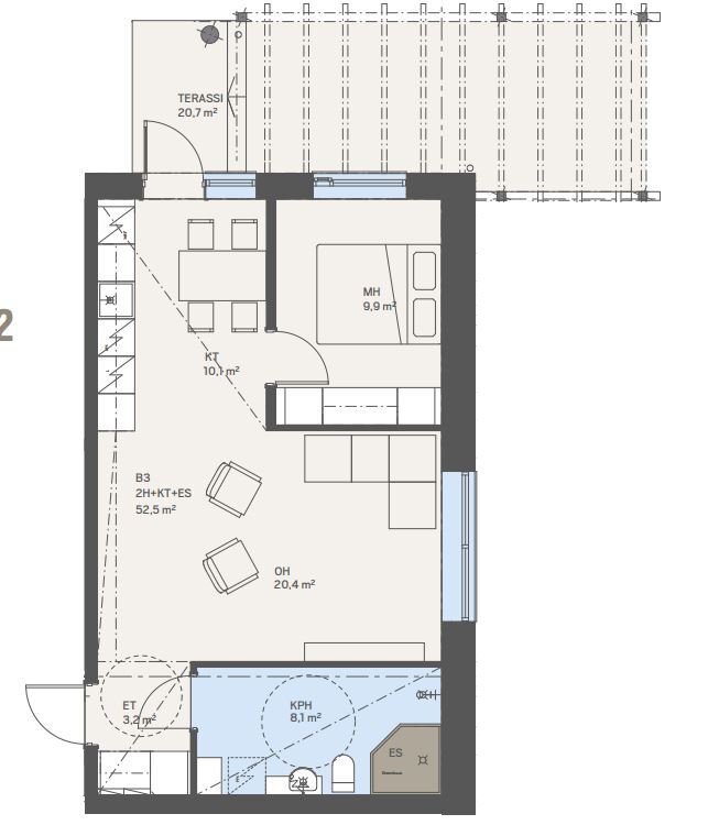 | Yhteensä m² | 52.5 m² |