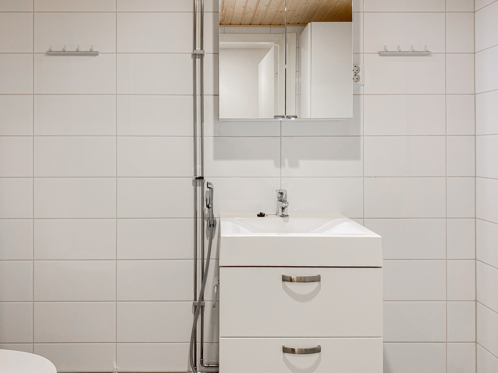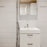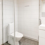 • Varusteet: suihkuseinä, pesukoneliitäntä, wc-istuin, suihku, peilikaappi