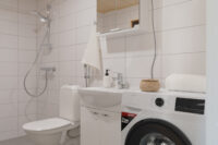 • Varusteet: pesukoneliitäntä, wc-istuin, suihku, peilikaappi