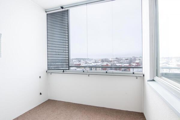 Vuokrataan toiseksi ylimmän kerroksen (7/8) parvekkeellinen kolmio. Hyvä varustelutaso mm. lattiaviilennys huoneistokohtaisilla ilmastointilaitteilla. Vuokraan sisältyy nettiliittymä . Rakennus sijaitsee rauhallisella paikalla palveluiden läheisyydessä mm. kauppa ja kuntosali tien toisella puolella. Torillekin matkaa vain n.1km.