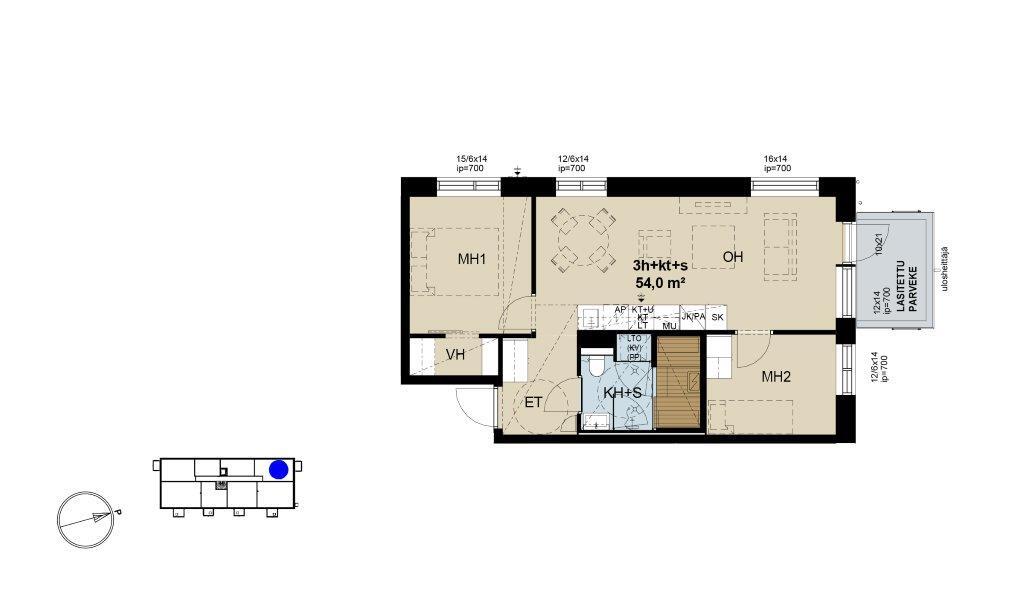 | Asuinpinta-ala m² | 54 m² |