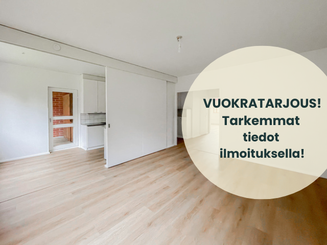 *** VUOKRATARJOUS! Ensimmäiset kaksi vuokrakuukautta puoleen hintaan 315 €/kk, jonka jälkeen vuokra 630 €/kk! Vuokraa nyt ja asut ensimmäiset kaksi kuukautta puoleen hintaan. Vakuus lasketaan normaalista kuukausivuokrasta. Etu voimassa, kun vuokrasuhde alkaa viimeistään seuraavan kuun alusta. ***