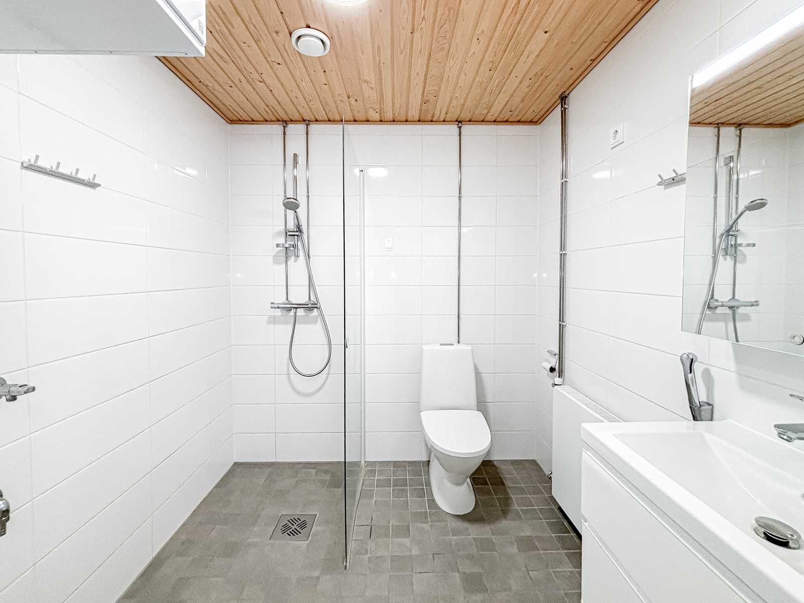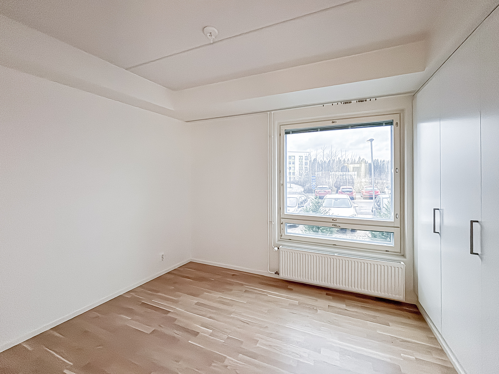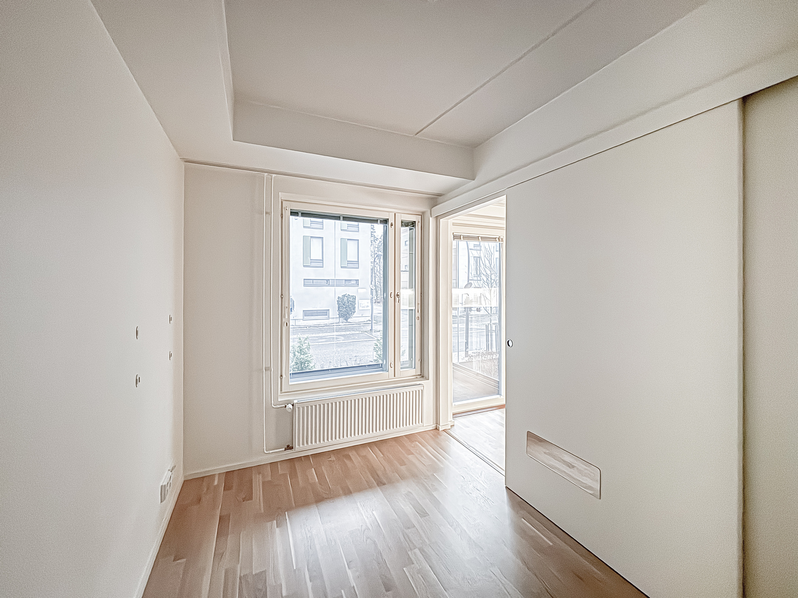 Tässä kodissa on kauniin valkea ja hyvin varusteltu avokeittiö, joka aukeaa luontevasti olohuoneen yhteyteen. Asunnossa on kaksi makuuhuonetta, sekä loistavat säilytystilat niin kiinteiden kaapistojen, kuin vaatehuoneenkin muodossa.